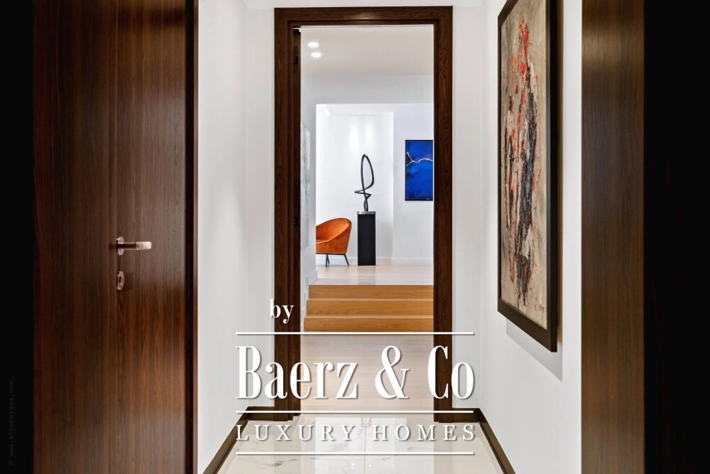 يمتد التراس بمساحة 132م² من منطقة المعيشة الرئيسية، موفراً مساحة كبيرة للاسترخاء في الهواء الطلق. وتضفي الشرفة الخاصة على السطح لمسة فريدة للعقار، مع حديقة منسّقة بمساحة 480م²، تطل على مناظر بانورامية للبحر والمتنزهات المحيطة، بالإضافة إلى جاكوزي ومطبخ خارجي مصمم لأمسيات الصيف الطويلة. يتسلل الضوء الطبيعي إلى جميع أرجاء السكن، فيعزز الإحساس بالأناقة والصفاء.