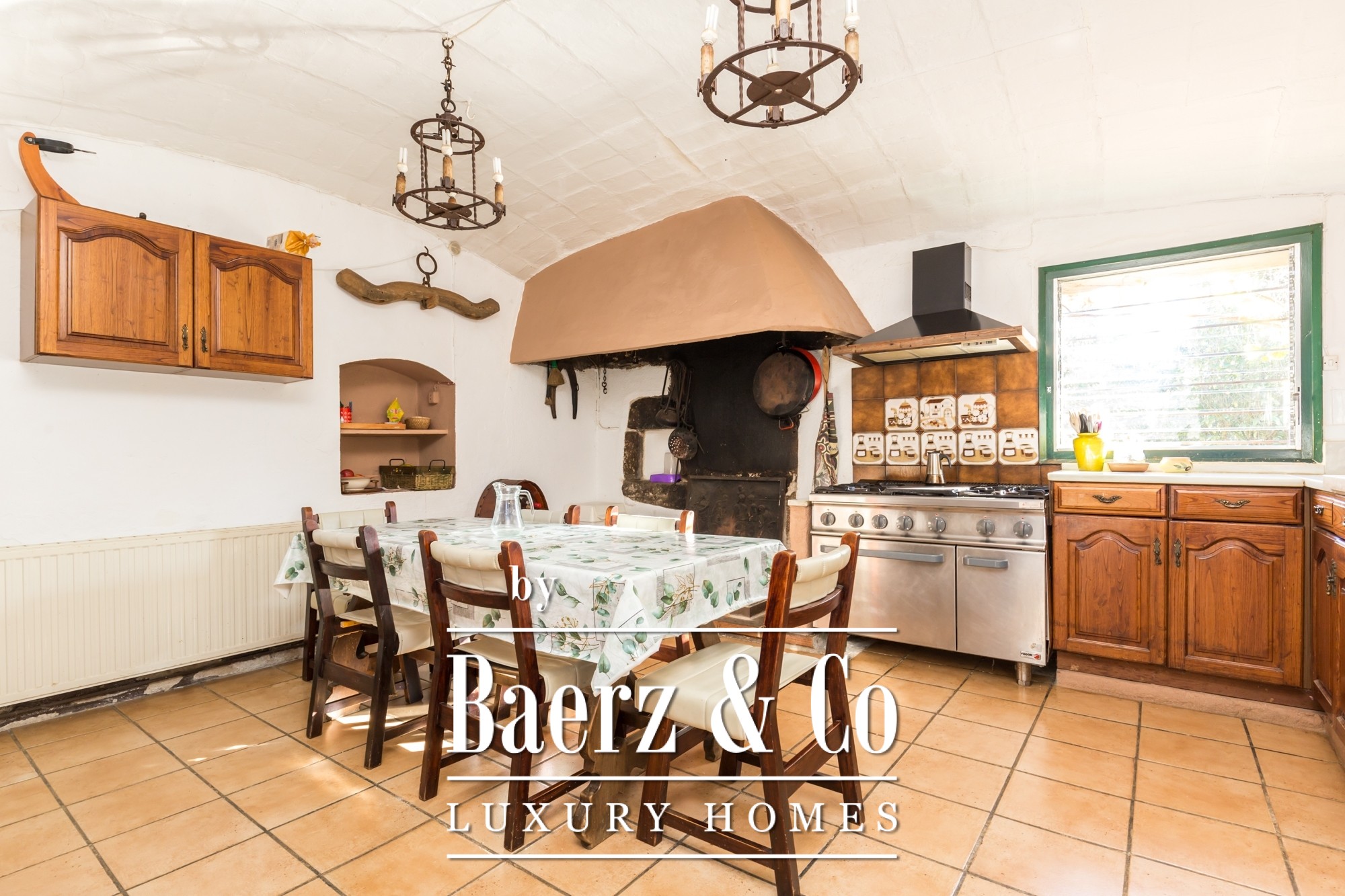 تضم الإقامة الرئيسية سبع غرف نوم وأربعة حمامات، وتتميز الأجنحة في الطابق العلوي بتراسات خاصة ومناظر خلابة. تعكس الأسقف العالية والغرف المضيئة والتفاصيل المعمارية الأصلية الطابع التاريخي للعقار. يوجد غرفتا طعام ومعيشتين، ومطبخ عائلي فسيح، ومكتب-مكتبة يطل على حديقة خاصة هادئة. كما توفّر المساحات التخزينية السخية والمباني المساعدة مرونة عملية.