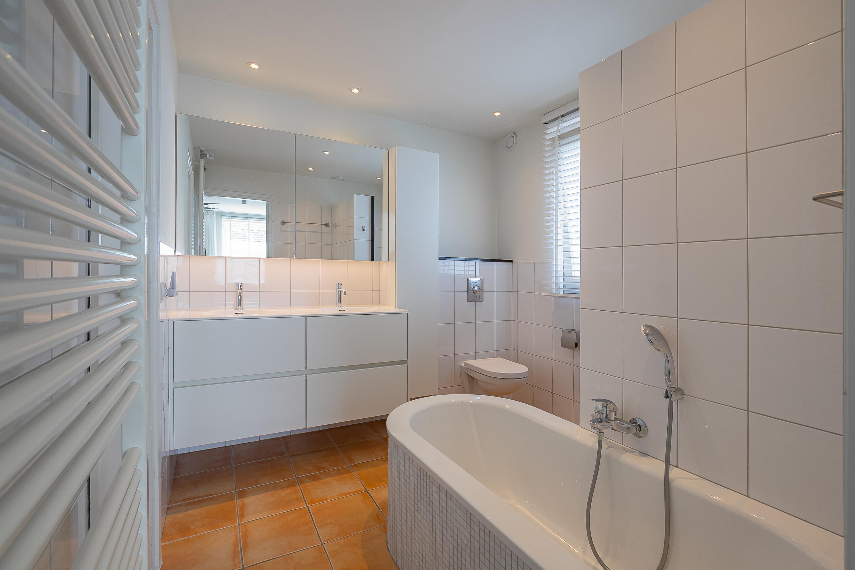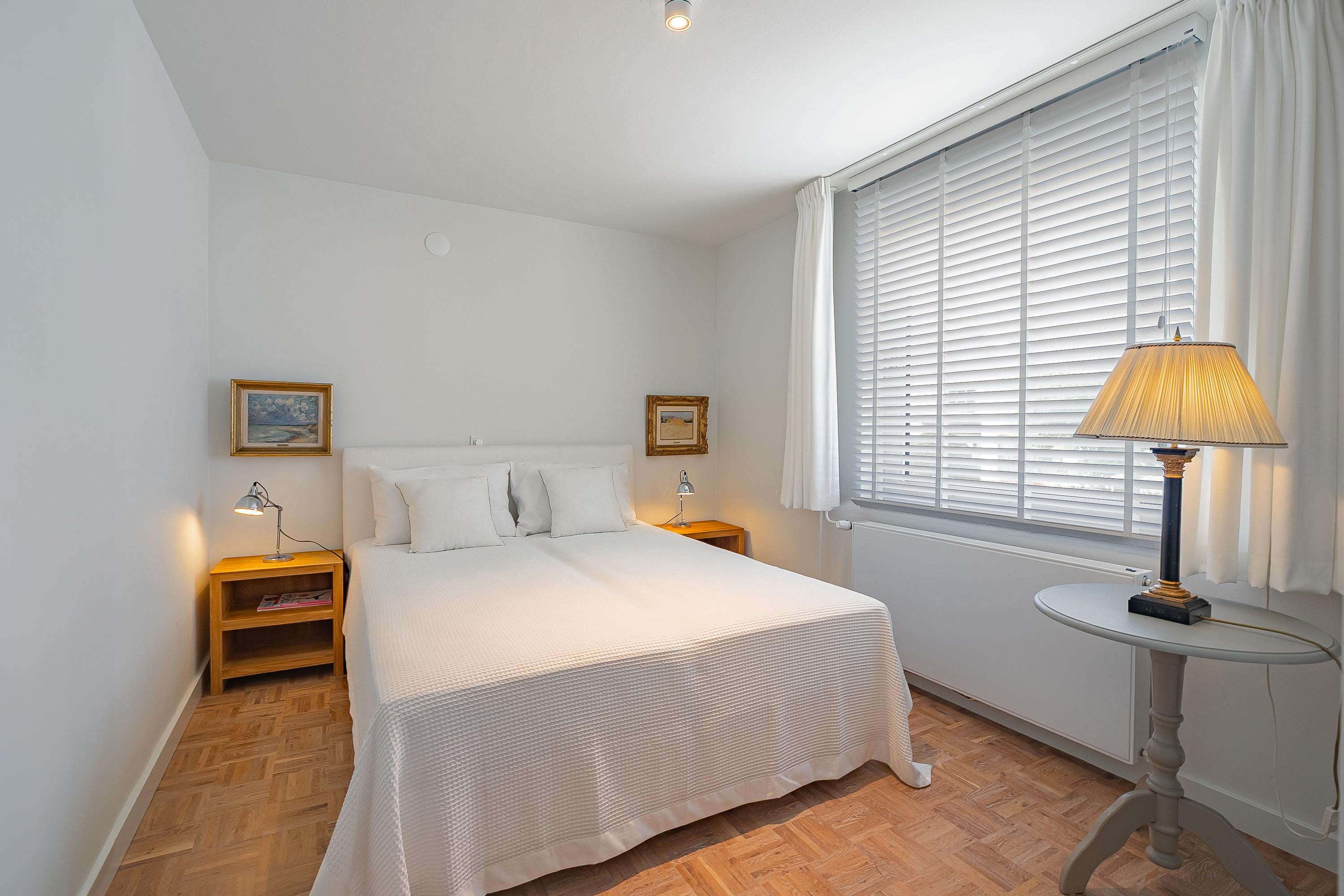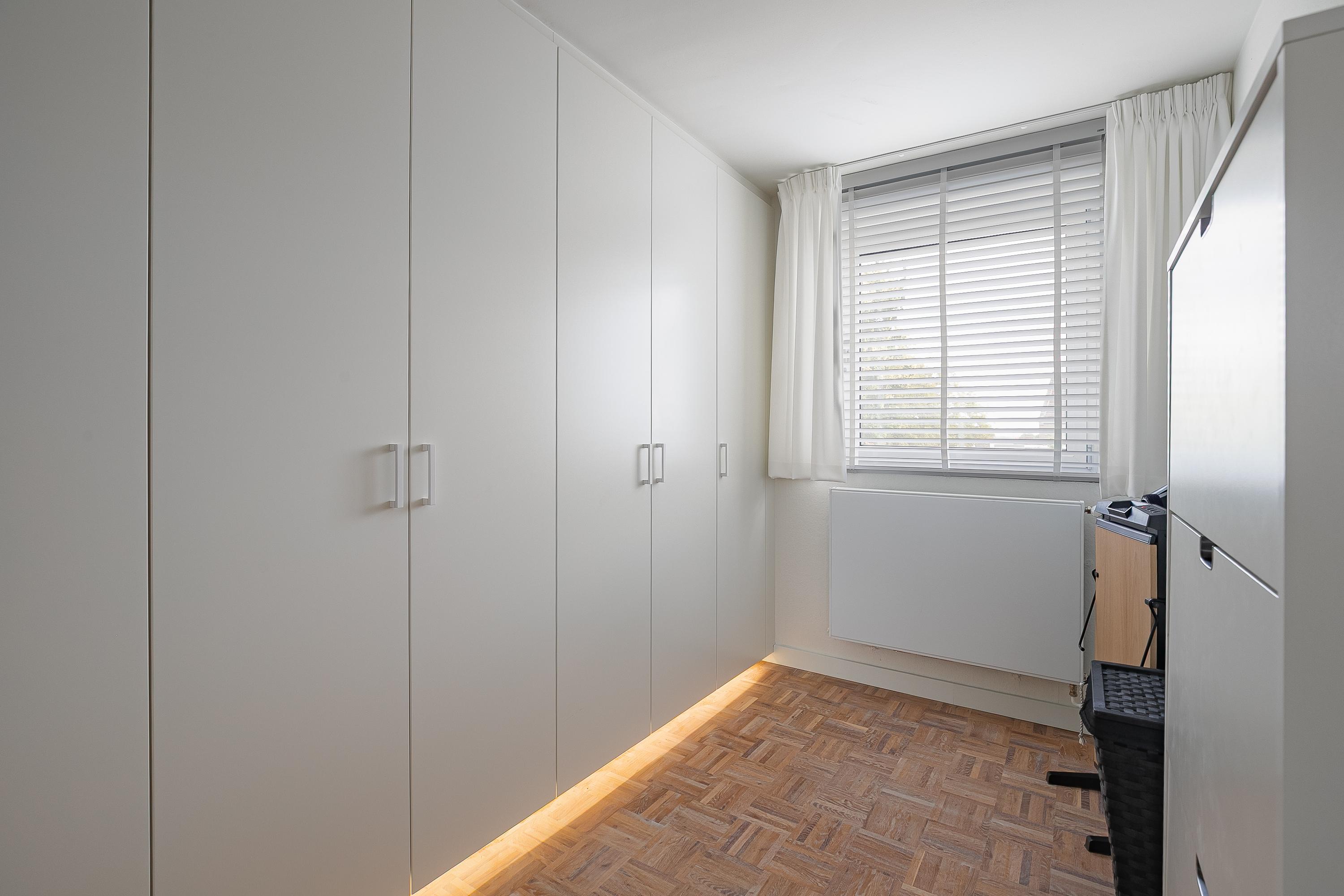 في الطابق العلوي، تكمل أربع غرف نوم خزائن مصممة خصيصاً من Slangen Interieurbouw وأرضية باركيه بنمط الفسيفساء. يحتوي الحمام على دش مشي وحوض استحمام، وتهوية ميكانيكية، وتدفئة أرضية. تستفيد غرفة النوم الرئيسية من مكيف هواء؛ وتتوفر حلول تخزين واسعة مع قبو كبير يضم جراجاً بمساحة 33م² وغرف خدمات، إضافة إلى مساحة تخزين في السطح.