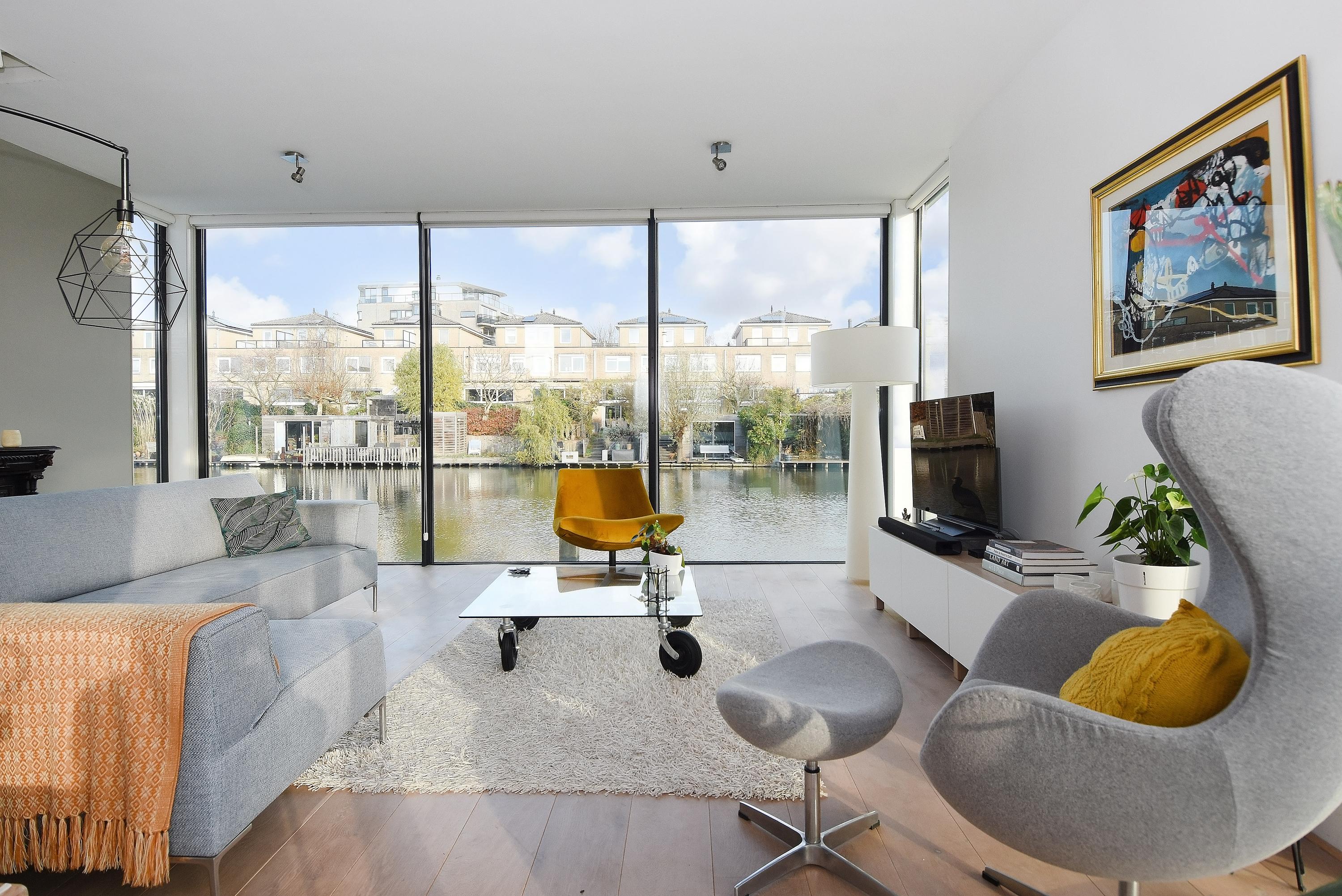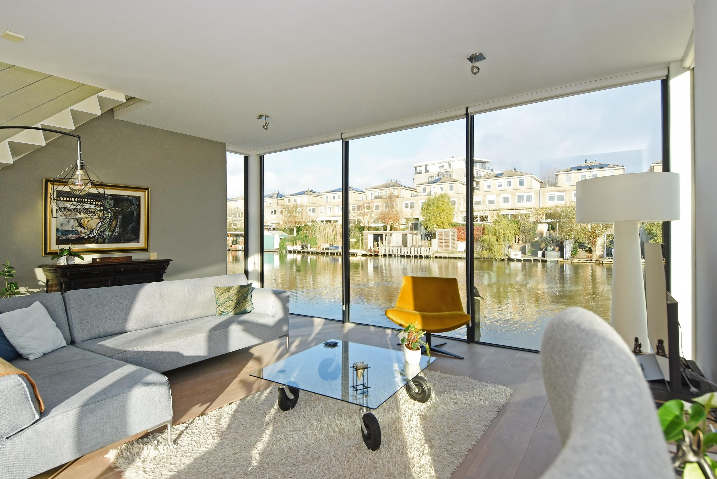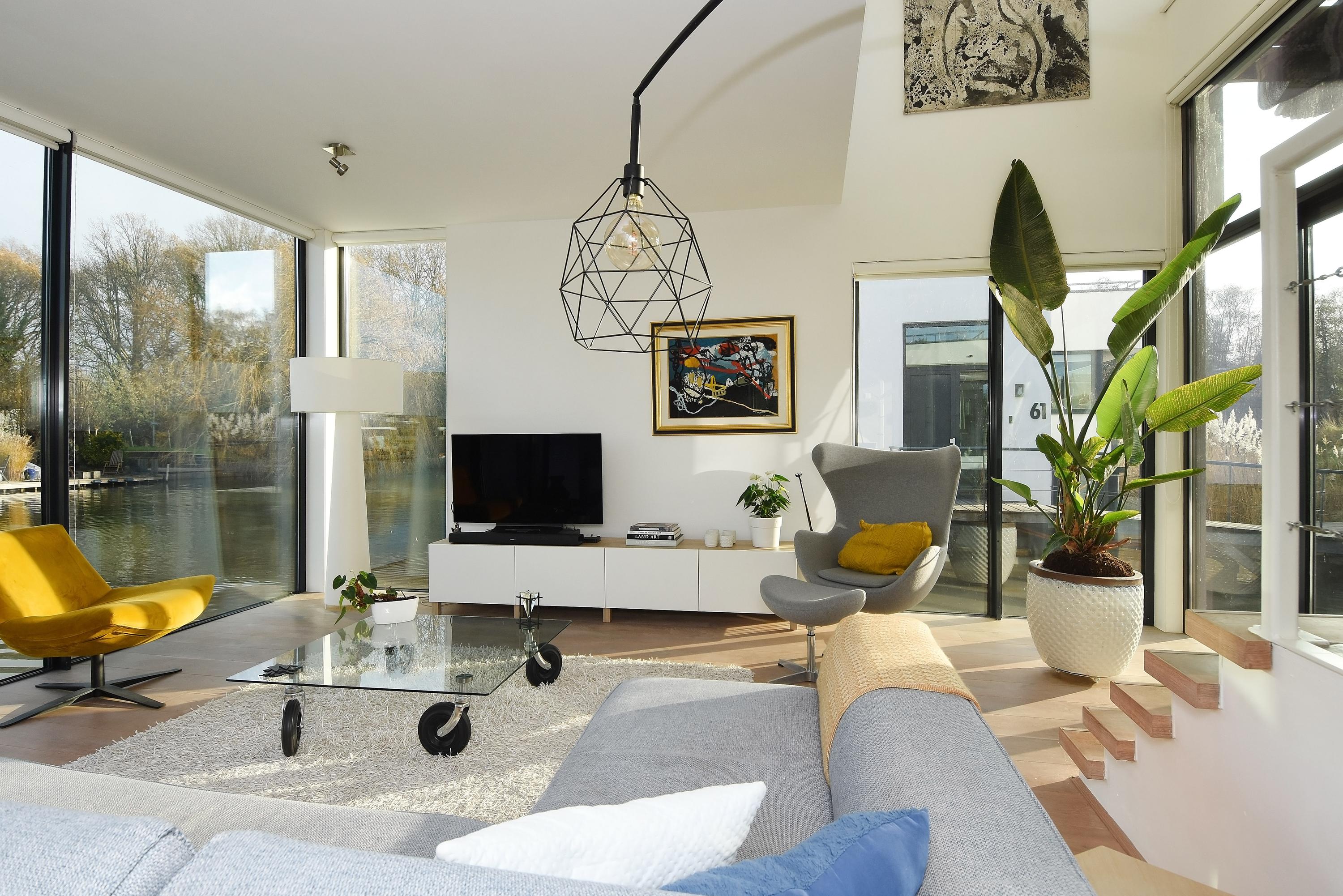 Die Raumaufteilung ist bewusst vielseitig gestaltet. Nach dem Eintreten gelangen Sie über einen festen Treppenaufgang mit separatem Fahrradabstellraum zum Haupteingang. Die Diele eröffnet einen effizienten Hauswirtschaftsbereich sowie eine Master-Suite mit Bad en suite, begehbarer Dusche und Doppelwaschtisch. Das Erdgeschoss vereint die voll ausgestattete Küche mit großzügiger Kochinsel und den Wohnbereich, bei dem bodentiefe Fenster das Wasser inszenieren. Terrassen am Wasser und auf dem Dach bieten private Refugien für entspannte Stunden im Freien. Die als flexibler Bereich konzipierte Galerie eignet sich ideal für Arbeit, Freizeit oder stille Momente unter dem niederländischen Himmel.