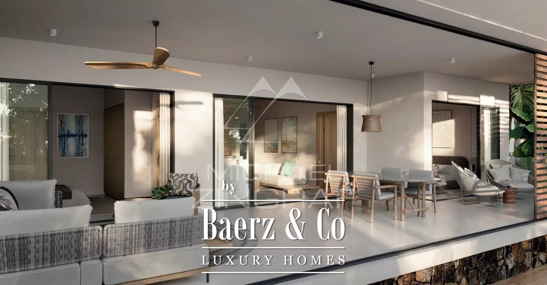 Außenbereiche sind elegant eingebunden – von holzverkleideten Gartenterrassen bis zur privaten Dachterrasse mit Pool. Gemeinschaftliche Annehmlichkeiten wie Sicherheitsdienst, Swimmingpool und gepflegte Gartenbereiche schaffen ein exklusives Refugium. Klimaanlage, Generator und Highspeed-Internet bieten zeitgemäßen Komfort, ohne den sanften Inselrhythmus zu stören.