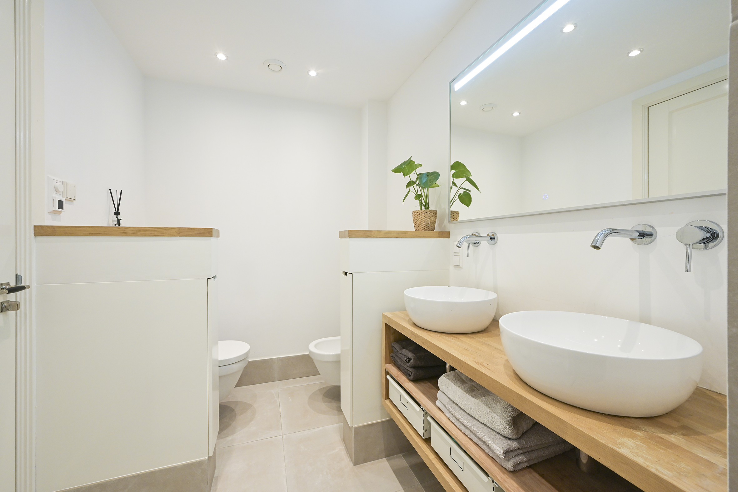The modern kitchen is equipped with every conceivable appliance and forms the heart of the home. Underneath the beautiful wooden floor is comfortable underfloor heating, which, together with an A energy label, ensures a pleasant and energy-efficient living environment.