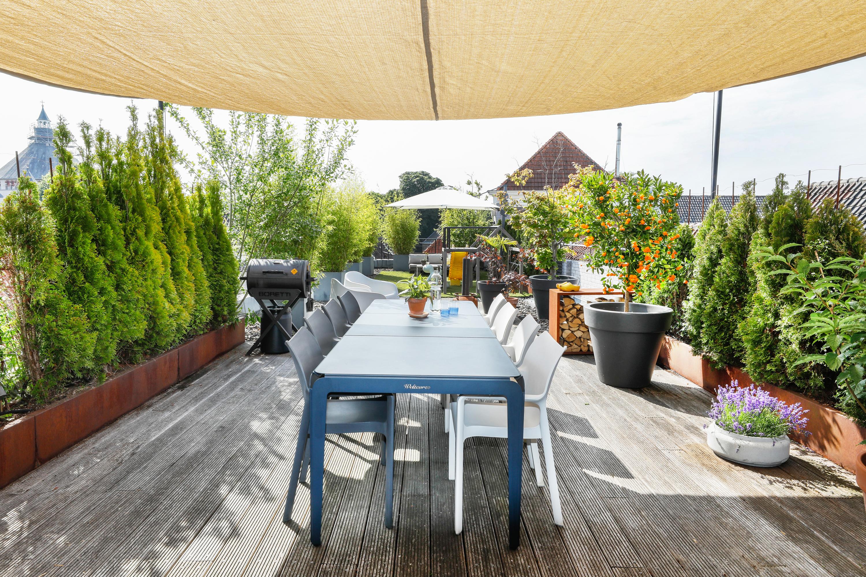 Large apartment in the heart of the city center with five rooms, a private entrance/bicycle storage, and an impressive roof terrace.