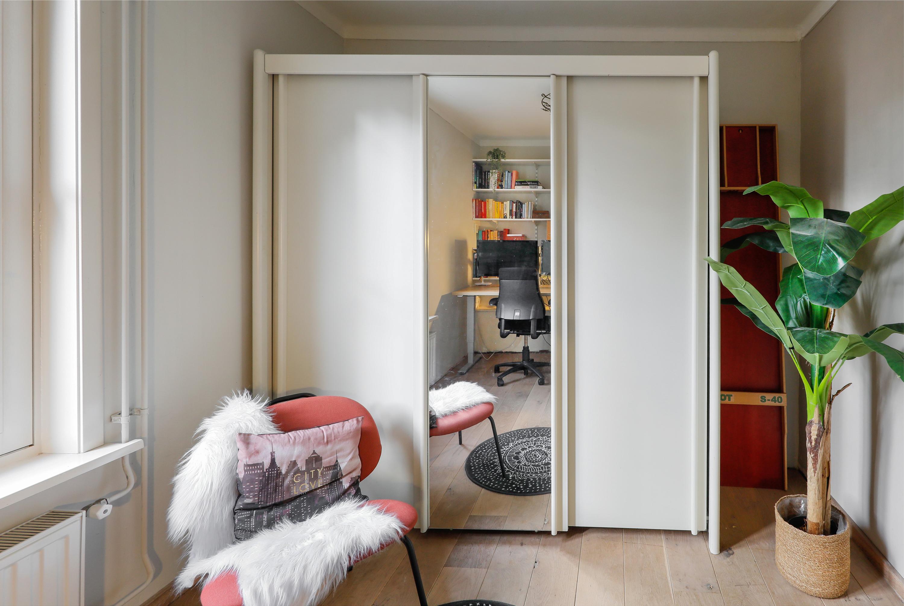 The living room is situated on the corner, offering a beautiful view of St. John's Cathedral and the adjacent square. The semi-open kitchen is connected without feeling like you're cooking in the living room. In addition to the roof terrace, this floor also features an additional room, ideal as a study or guest room.