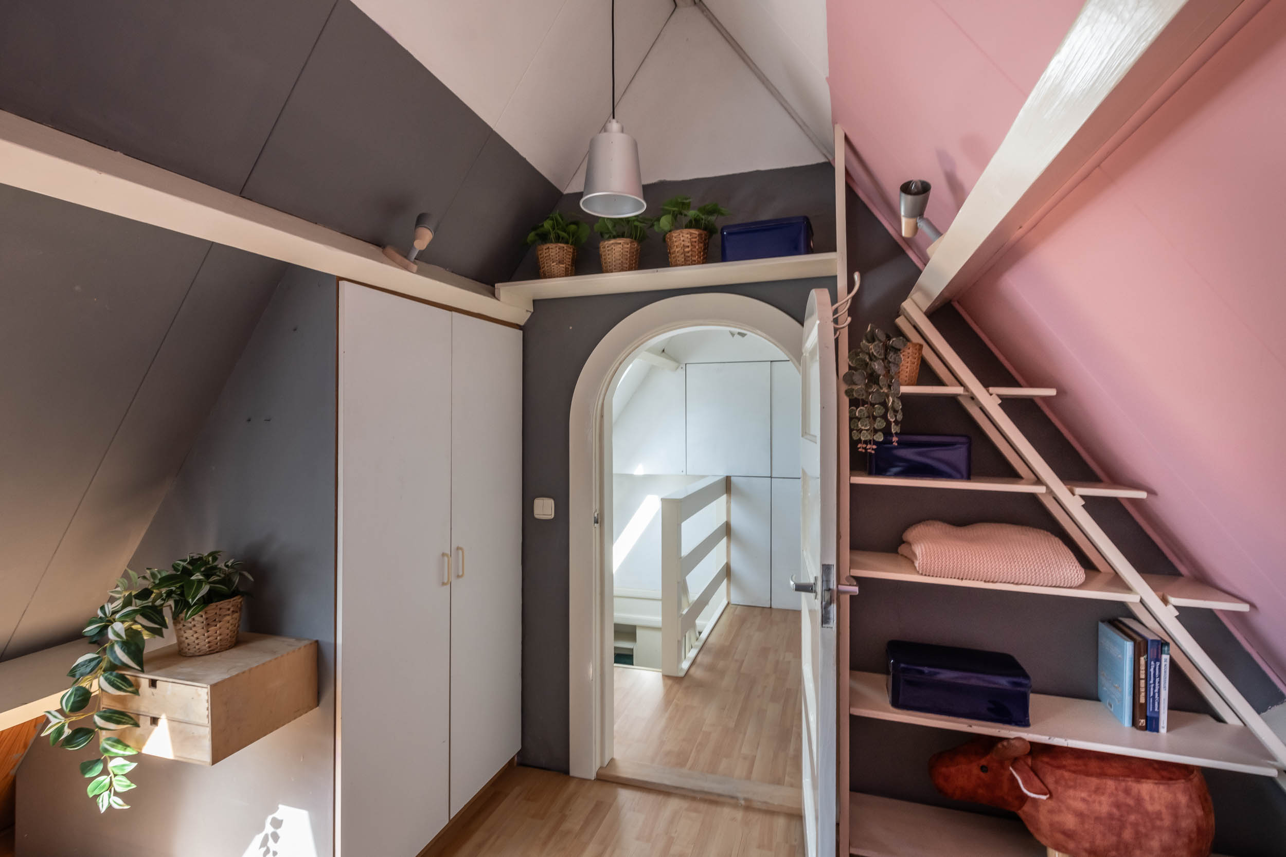 Landing with cupboard space and central heating boiler (2025), large, ridge-high bedroom with Velux window
