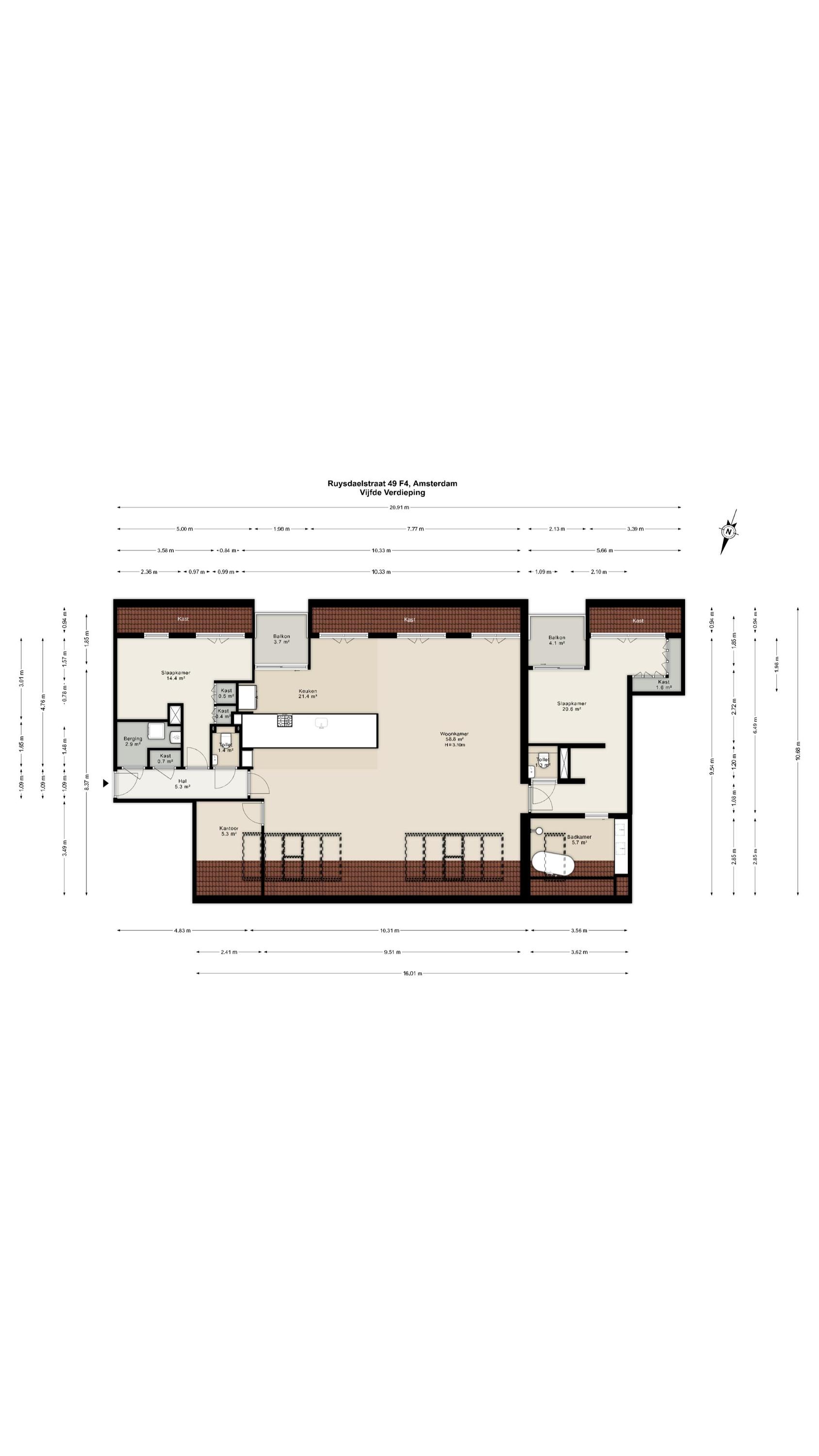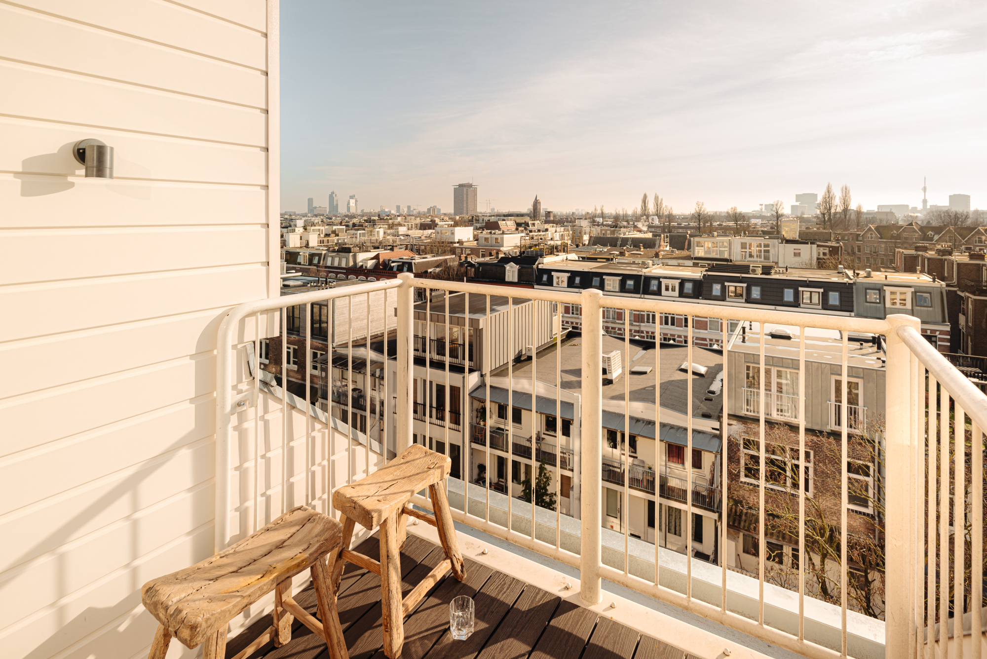 Experience modern living in a stylish and spacious apartment of approximately 148 m², situated in a prime location in Amsterdam Oud-Zuid. This luxurious apartment features a generous living area with an open kitchen, three bedrooms, and two south-facing balconies with a total area of approximately 8 m². The property is located on the fifth and top floor of an elegant building and can be accessed via a lift. The apartment offers breathtaking views of the city from both sides. Additionally, it is situated on freehold land and has an energy label A. There are also two separate storage rooms in the basement.