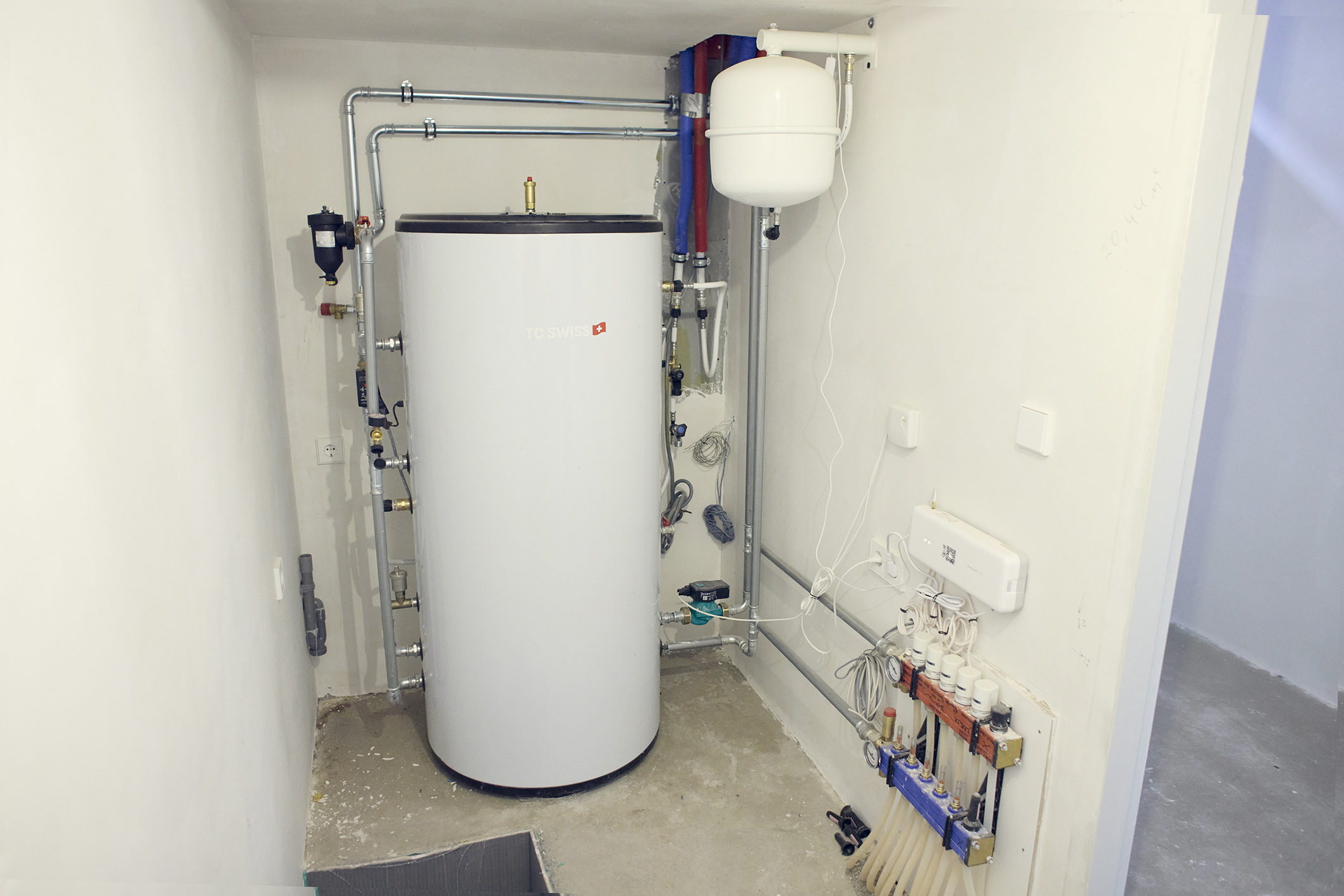 • Air-source heat pump with underfloor heating and cooling