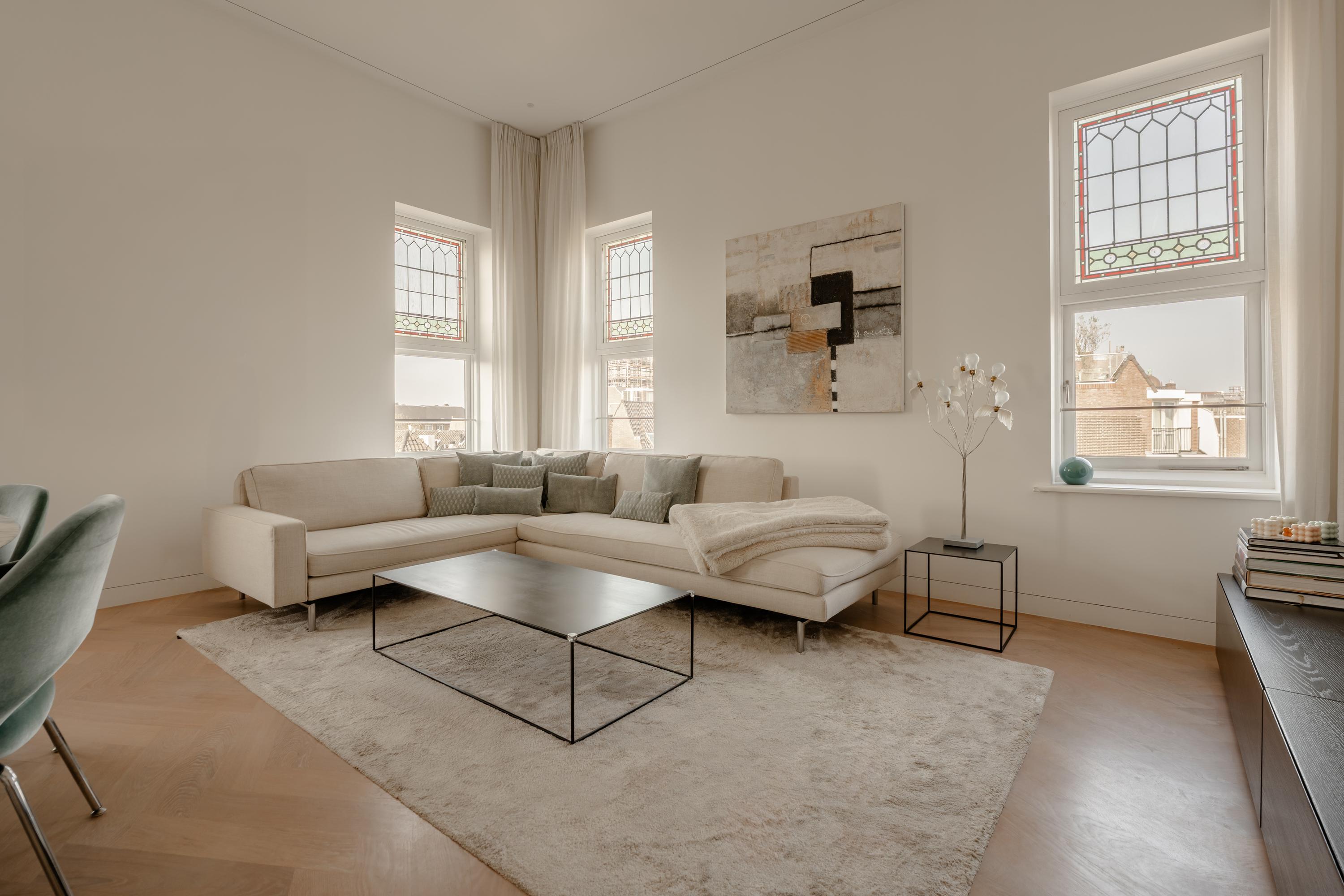 Located in the highly sought-after Vondelpark neighbourhood, this luxurious penthouse of approximately 115 m² is situated in a characteristic listed (monumental) building with elevator. The apartment combines authentic details with modern living comfort and is distinguished by its high-quality finishes and bespoke cabinetry throughout. Large windows provide an abundance of natural light and offer beautiful views over the city. In addition, the property is situated on freehold land, making it even more attractive.