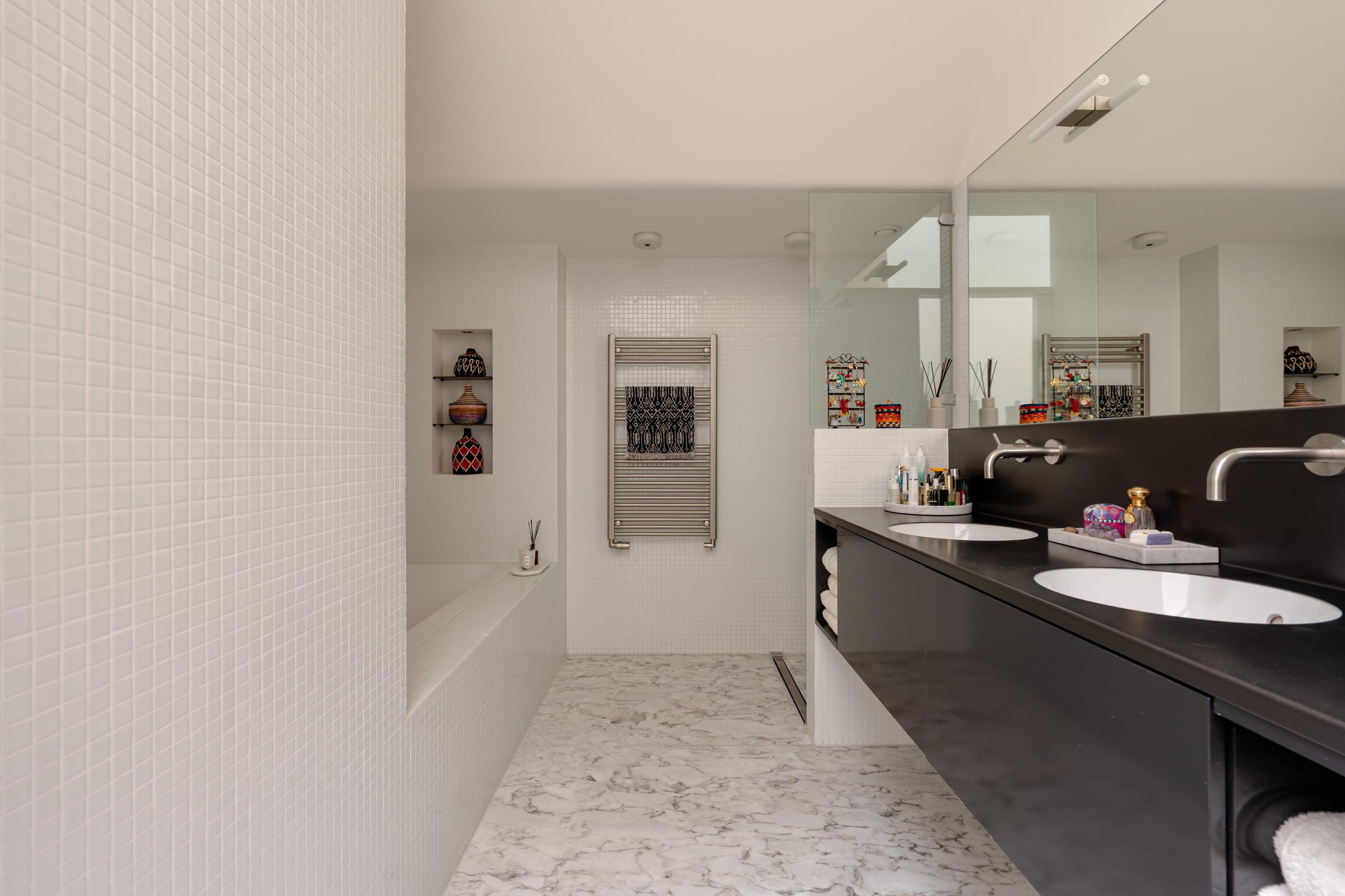 During the extensive 2012 renovation, great emphasis was placed on future-proofing and comfort. The property is fitted with high-quality sound insulation, allowing for peaceful living despite the central location. A built-in lift shaft is currently used as a storage closet but can be converted into a passenger lift with minimal modifications, enabling the residence to be made suitable for all stages of life. The house is fully wired for data, internet, telephony and television. Programmable switches provide efficient control over lighting and energy usage according to personal preferences. Among the features is an ‘all-off’ function, allowing you to switch off all lighting throughout the house at the touch of a button.