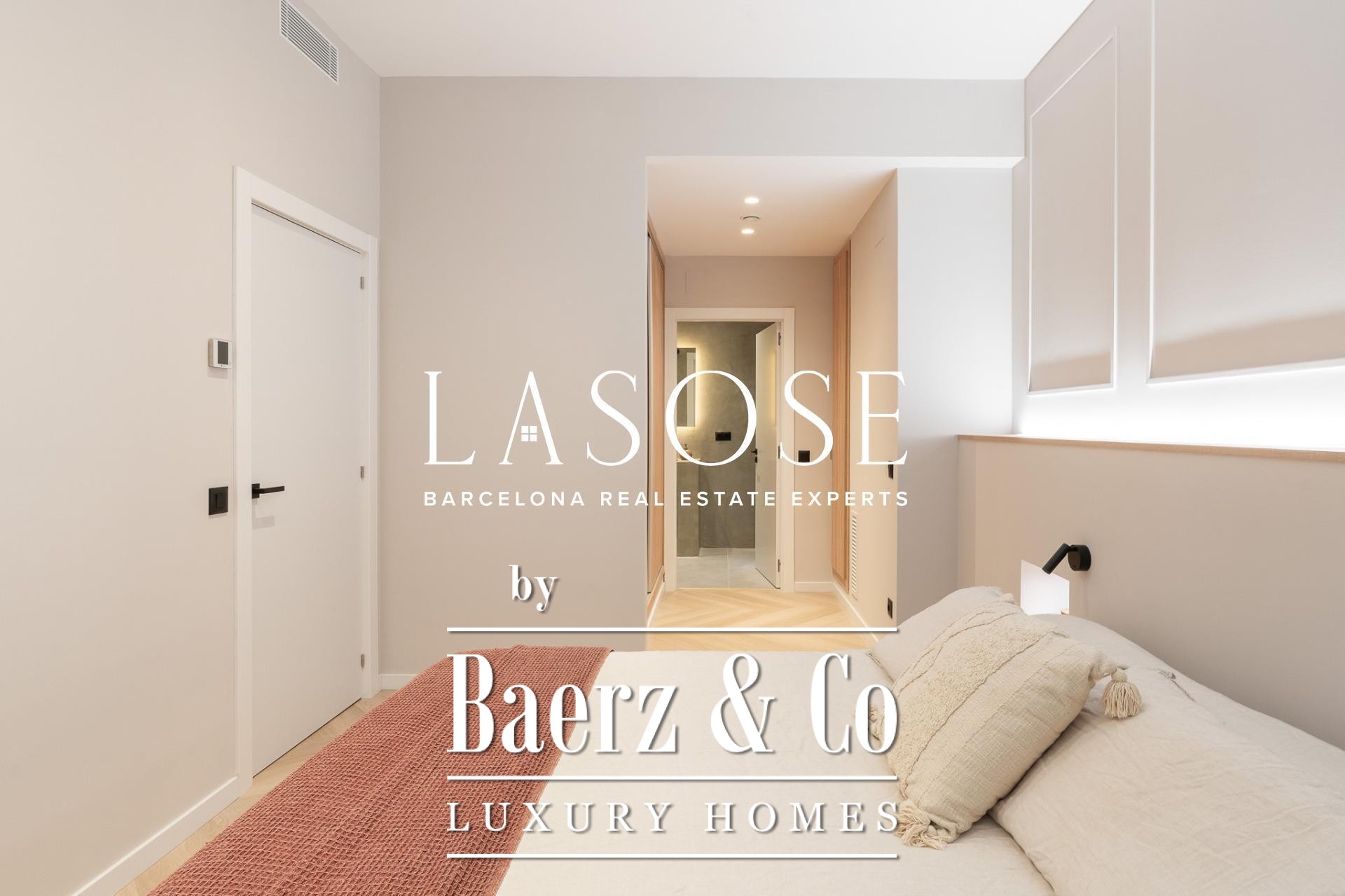 Three bedrooms, including a master suite with private bathroom and separate dressing room, are complemented by fitted wardrobes and custom carpentry. Comfort is assured through aerothermal air conditioning and double-glazed wooden windows. Residents benefit from the convenience of an elevator, concierge service, video intercom, and secure armored door. The long-tail variation luxury apartment for sale in Barcelona is well-suited for those who value discretion and design.
