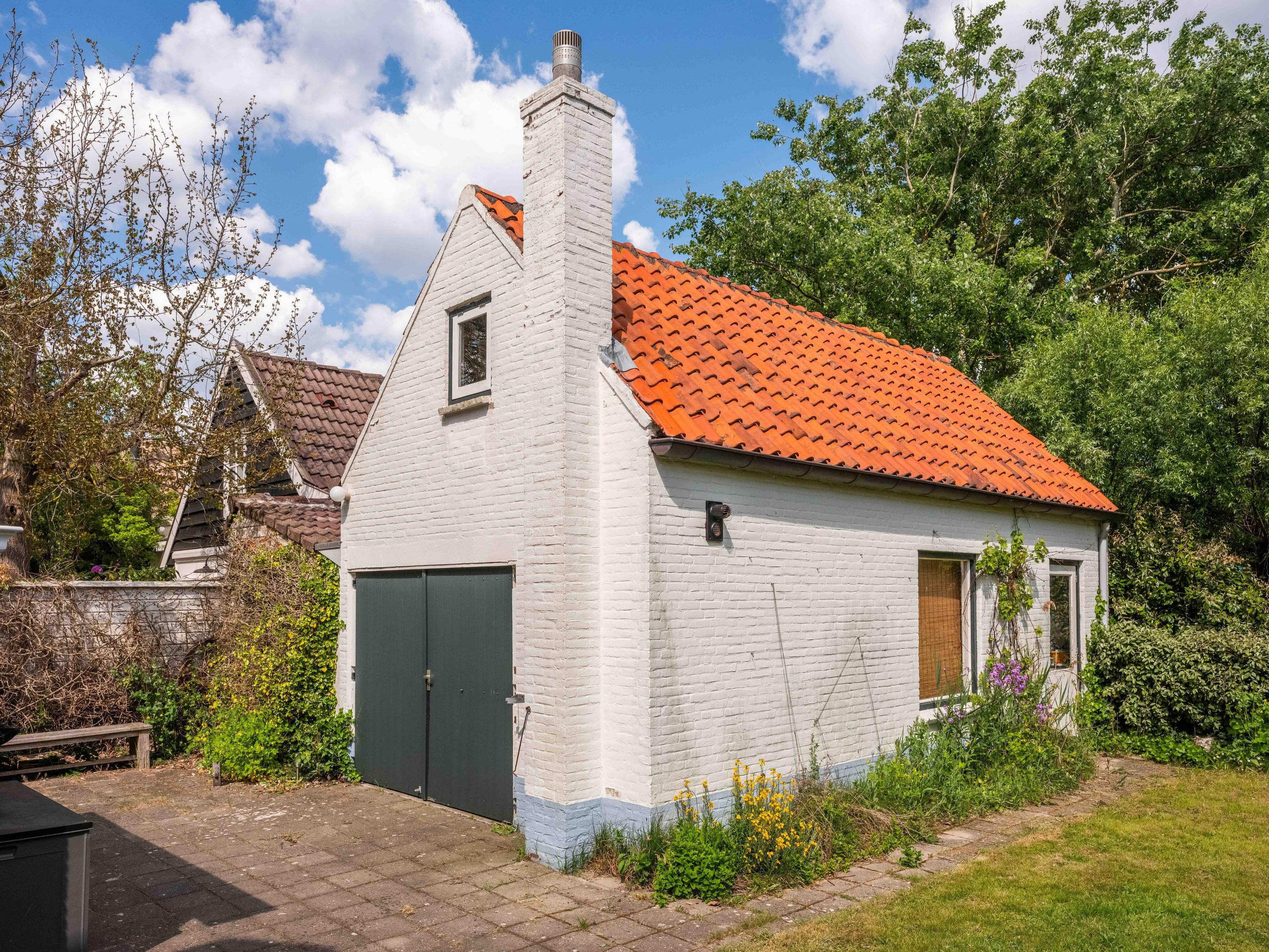 There is also a detached outbuilding on the plot. This outbuilding already has a recreational purpose, but is currently used as a garage. This building has a kitchen unit, washing machine connection, bathroom (shower, toilet, washbasin), and an attic accessible via a hatch with a separate staircase. The outbuilding needs modernisation, but offers plenty of potential.