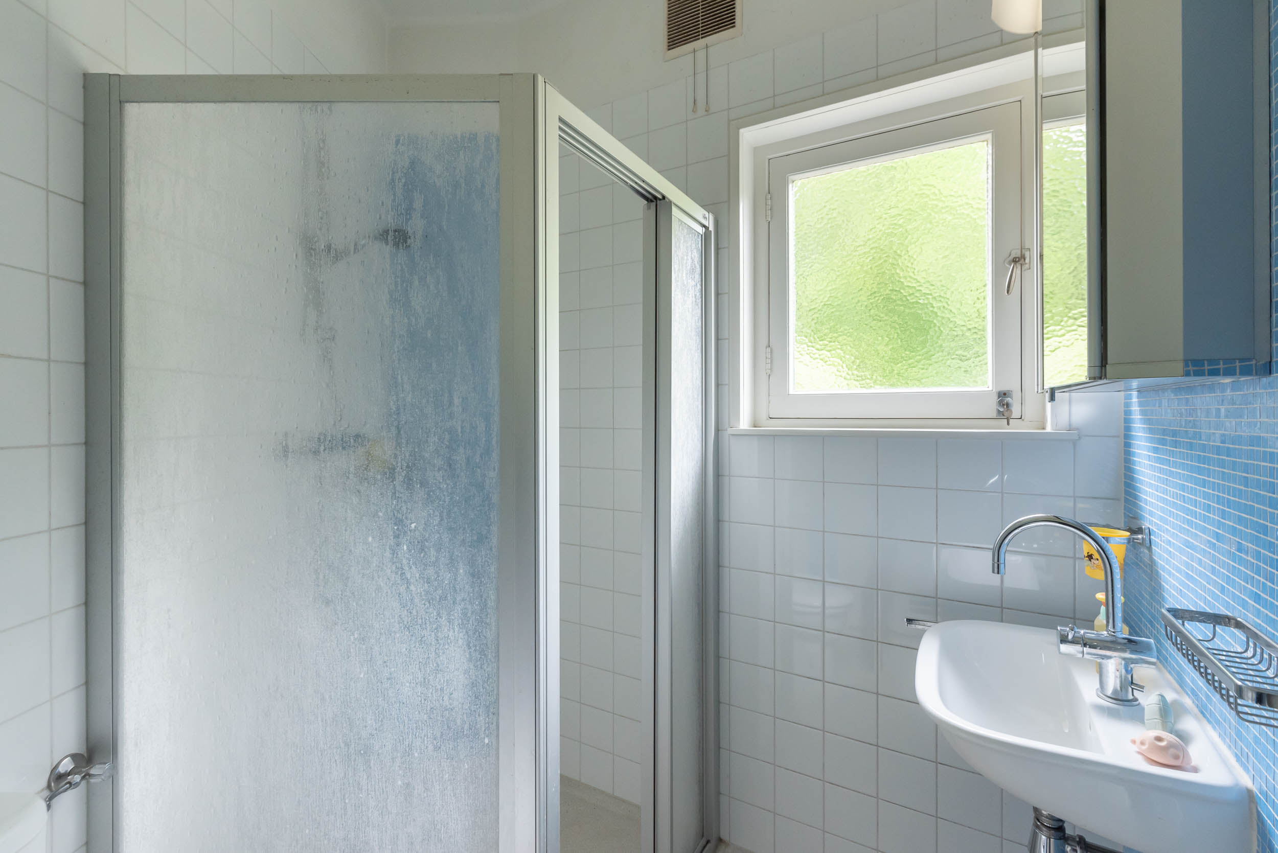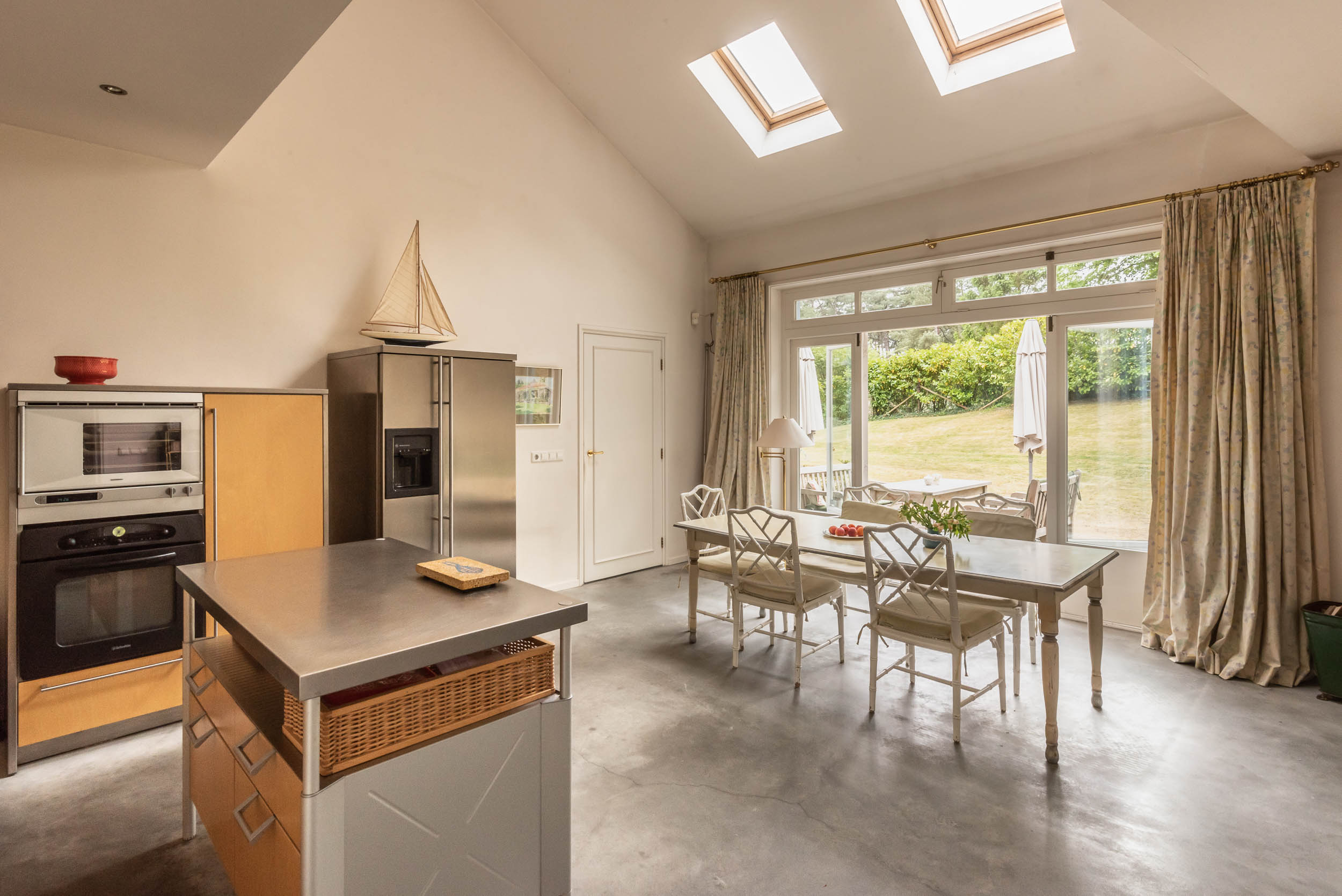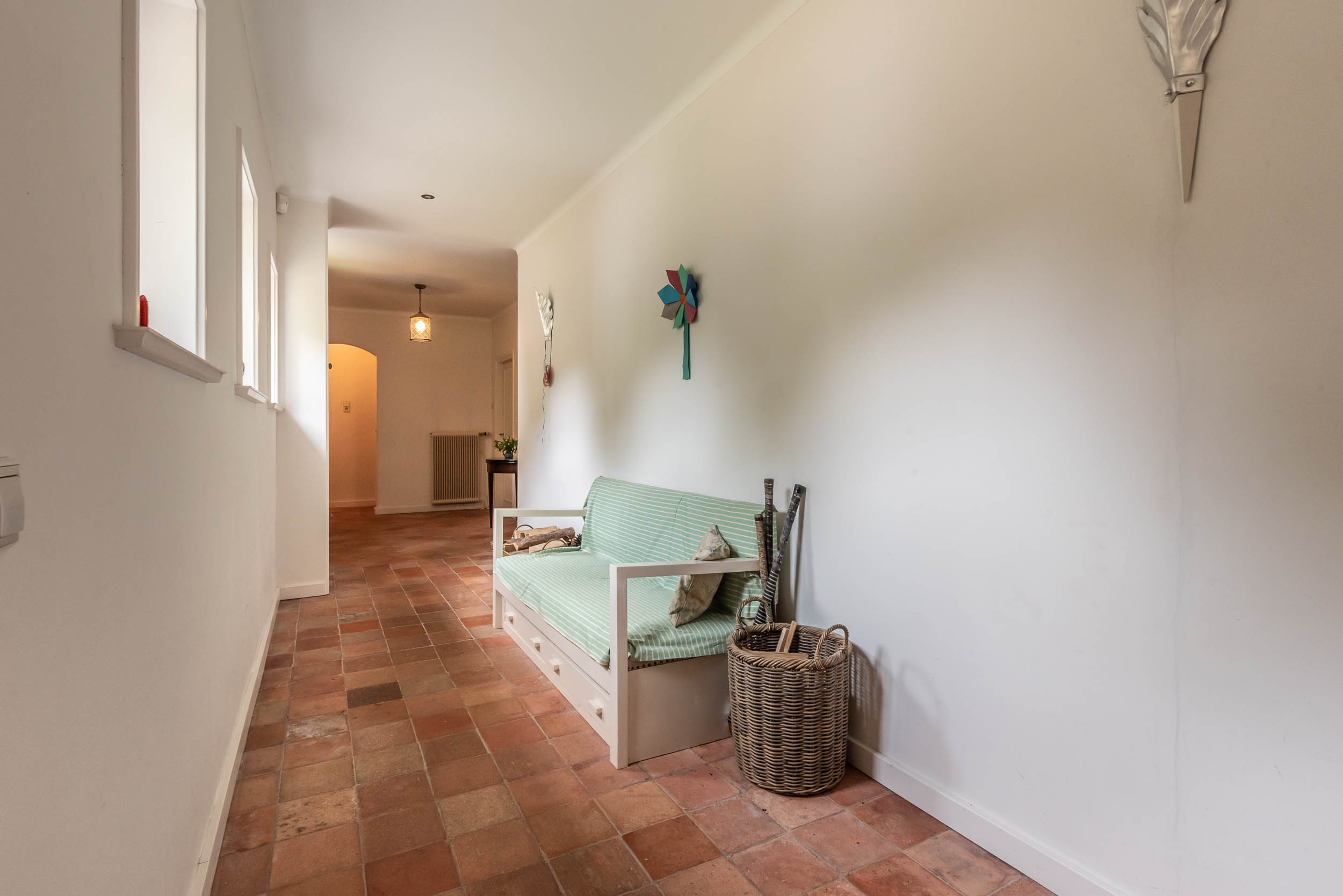 The villa exudes a Mediterranean feel with its light blue Louvre shutters, hipped roof and French tiles in the hallway. Set on a sunny plot spanning no less than 4420 m², it is surrounded by beautiful trees. The generously-sized driveway leads to the double carport with round point. There is ample parking space for several cars, as well as an indoor garage. The property has a comfortable and welcoming layout, with rooms that are nicely sized. Most of the rooms open onto the garden through French doors, which is unexpected because of the varied nature of the plot. The original architecture was reflected in an extension that was built in 2001.