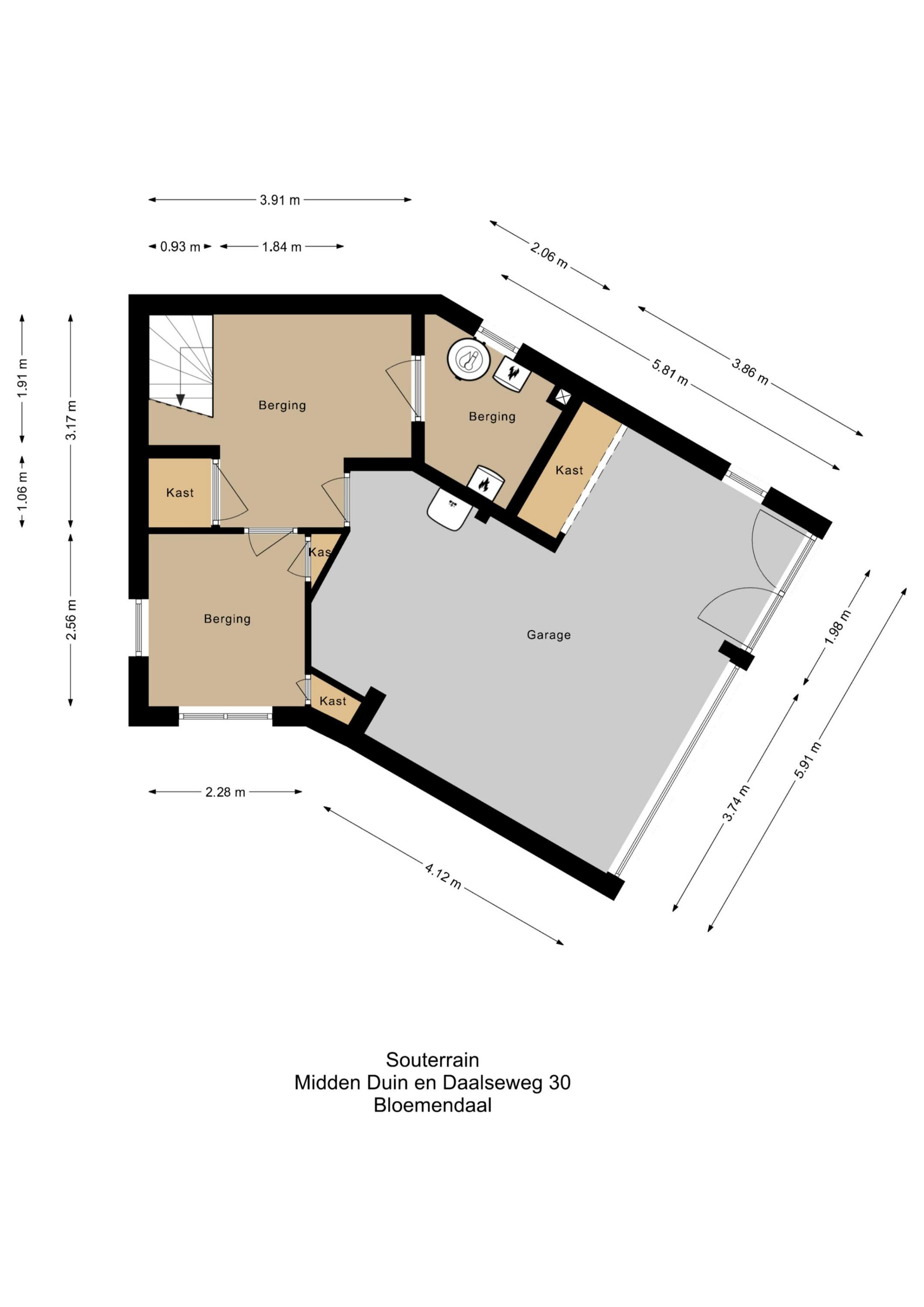 Cellar: central heating room, wine cellar with pantry and garage with utility sink.