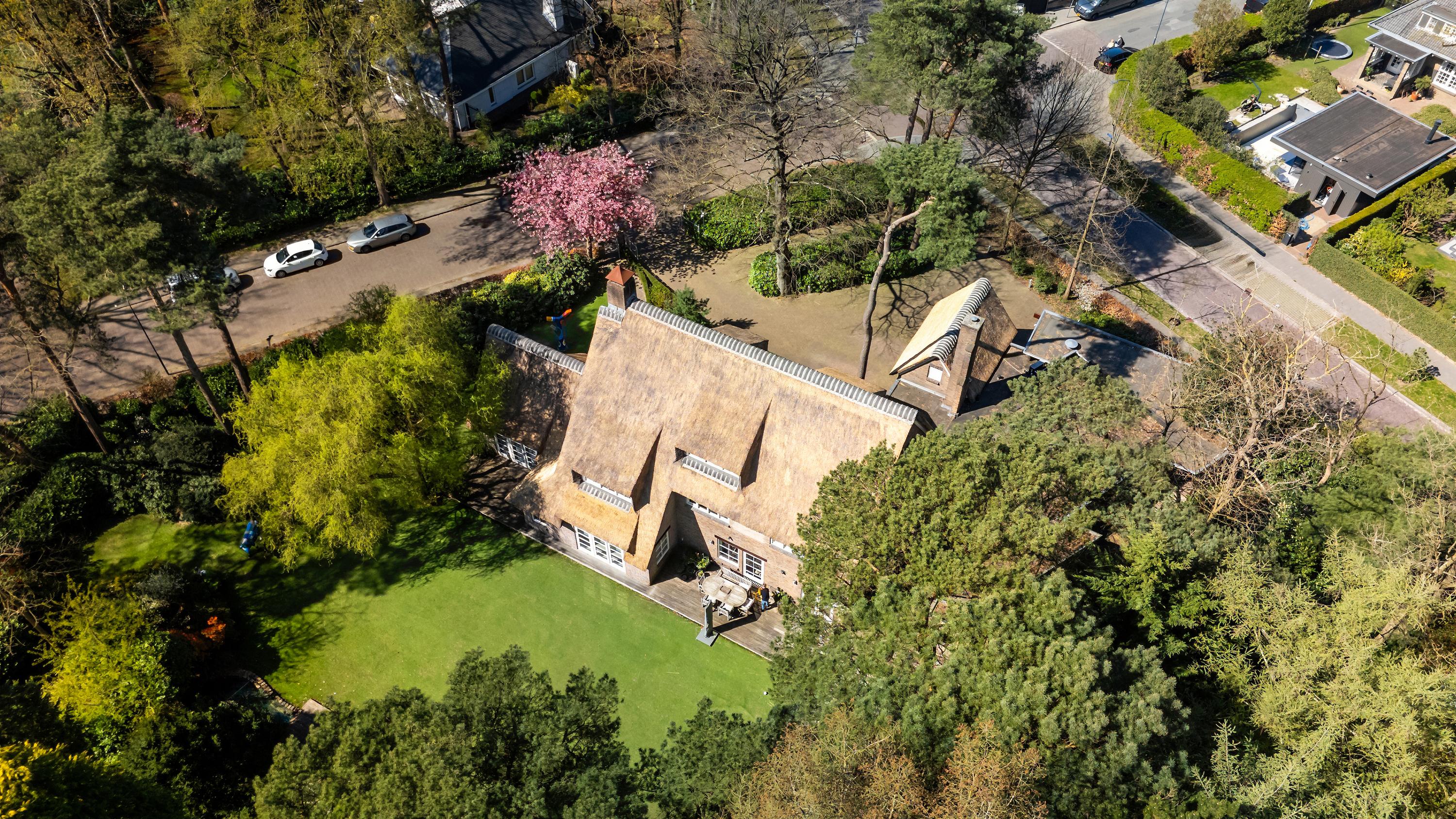 Very unique, perfectly maintained, thatched country house with, among other things, a luxurious wellness area with indoor swimming pool and fantastic outdoor space, situated at a prominent point in the middle of the popular and stately residential area "Ruitersbos" with its beautiful trees and within walking distance of the Mastbos.