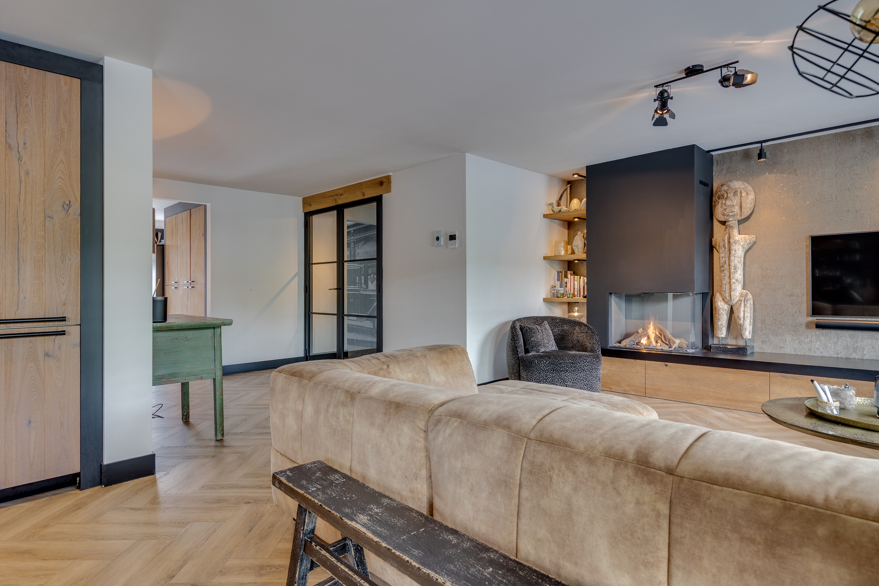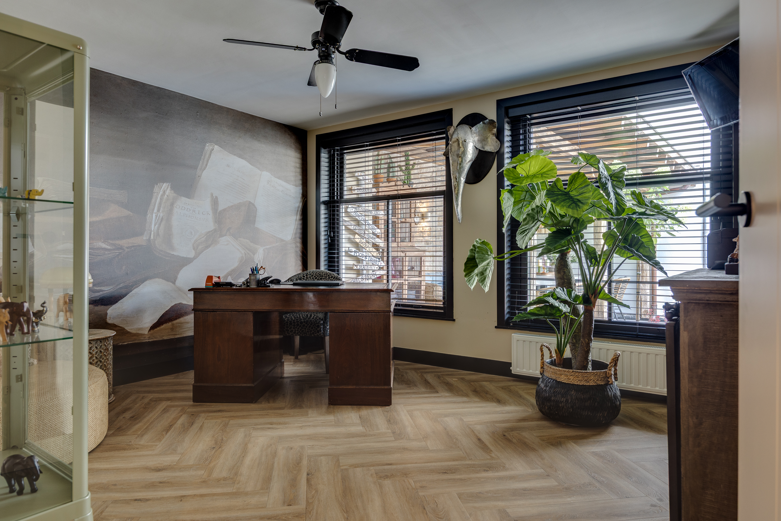 The spacious living room at the front is a real eye-catcher, with large windows that provide an abundance of natural light and offer a beautiful view of the lively Kerkbrink. The stylish PVC flooring that runs throughout the entire living area is immediately noticeable. This flooring combines a warm, soothing look with practical features such as durability and ease of maintenance. It forms the perfect basis for any interior. The modern gas fireplace creates a cozy ambiance, ideal for atmospheric evenings. In addition, the air conditioning ensures that the indoor climate remains pleasant throughout the year. Everything about this floor exudes comfort, style, and luxury.
