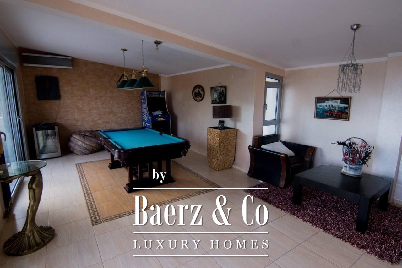 The villa has 4 levels. It has a large pool in front of it (10m x 5m) and a billiard room. The villa has a stone façade. It is connected by an asphalt road to the main road.