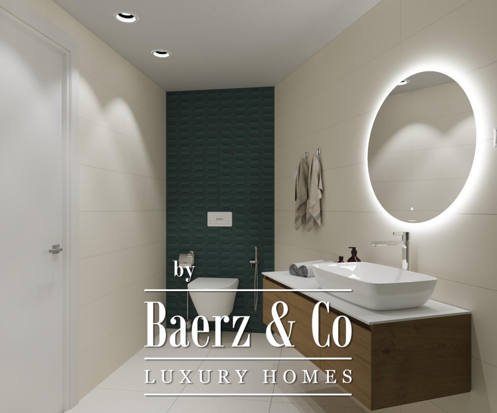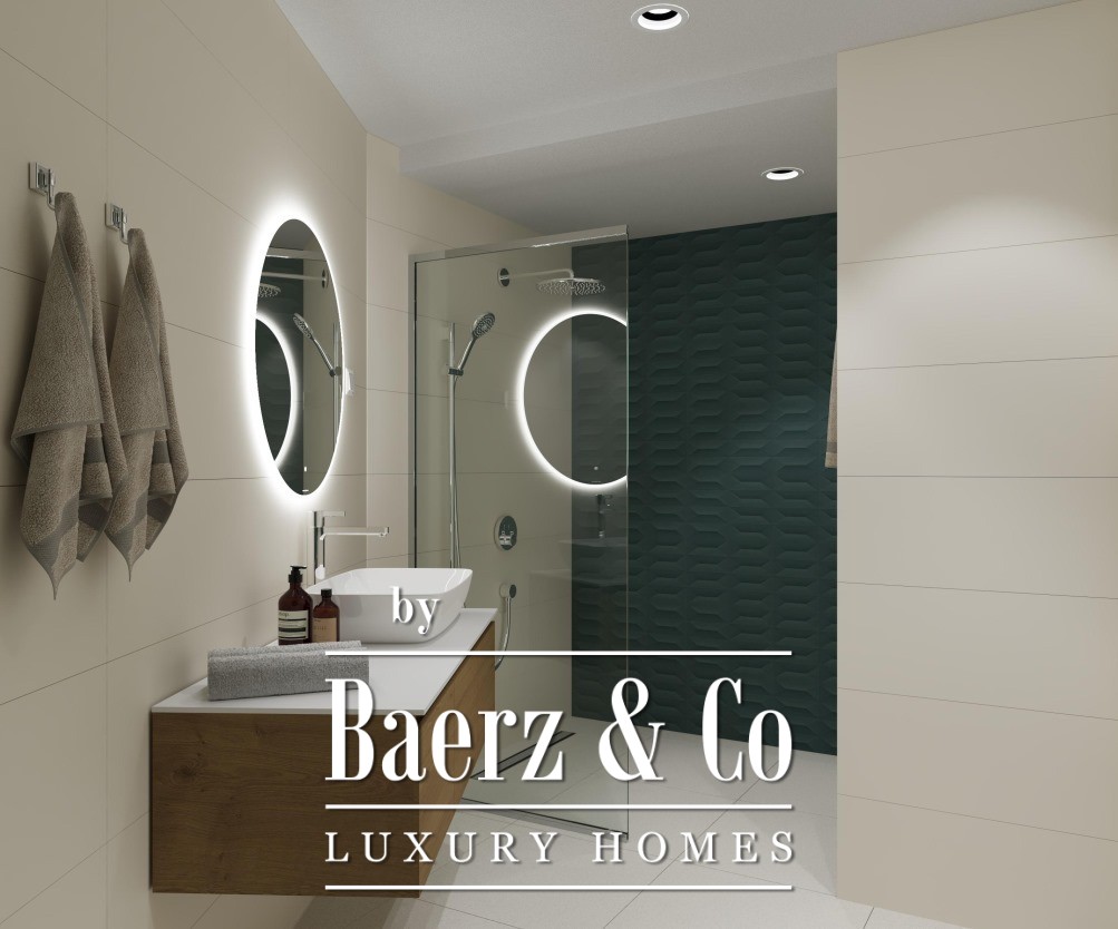 The building has 5 stories, while the apartment is on the 3rd floor. This apartment complex has a pool. A 12m2 garage spot and 4,85m2 storage room are included within the price of the apartment. The building is connected by an asphalt road to the main road.