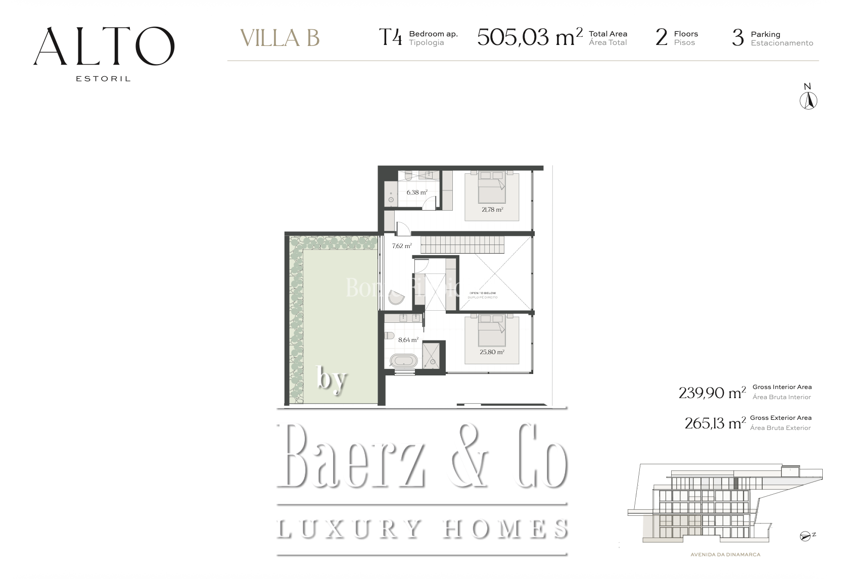A landscaped garden and private swimming pool transition the living experience outdoors, offering a sense of calm and privacy within a secure condominium. Essential conveniences include an equipped kitchen and three interior parking spaces, solar panels for water heating, and pre-installation for electric vehicle charging. Residents benefit from concierge service, gym, and sauna, supported by a suite of security features and energy certification B. Alto Estoril places renowned international schools, restaurants, golf, beaches, and healthcare within easy reach, while Lisbon waits just 25 minutes away—a contemporary villa that balances destination living with refined ease. The rare combination of modern design, controlled light, and refined amenities makes this luxury villa for sale in Cascais e Estoril an exceptional proposition.