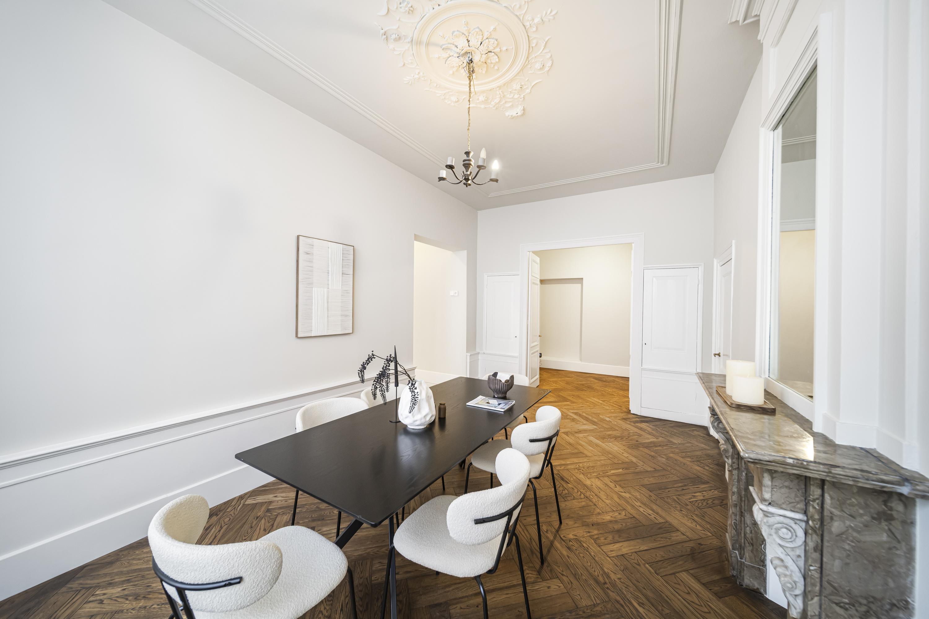 The property underwent a thorough and stylish renovation last year. Original features have been carefully restored and combined with modern comfort, including underfloor heating, a new technical installation, and three luxurious bathrooms. With numerous rooms, several living and office spaces, and a generous open-plan kitchen area, this house is ideally suited for large families, dual occupancy, or a representative live/work setup.