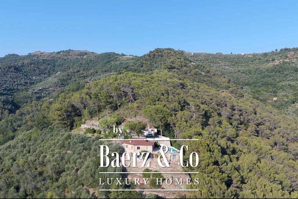 Access is through a private road with a remote-controlled gate, ensuring privacy and quiet. There is parking for several cars. The medieval village of Dolceacqua is less than ten minutes away, with the coast and towns such as Ventimiglia, San Remo, and Monte Carlo within easy reach. Direct hiking routes lead from the property into the surrounding hills and picturesque villages, while beaches and cultural events remain close at hand. This luxury villa for sale in Dolceacqua offers peace, provenance, and a distinct sense of place, allowing owners to embrace both seclusion and the richness of Ligurian life.