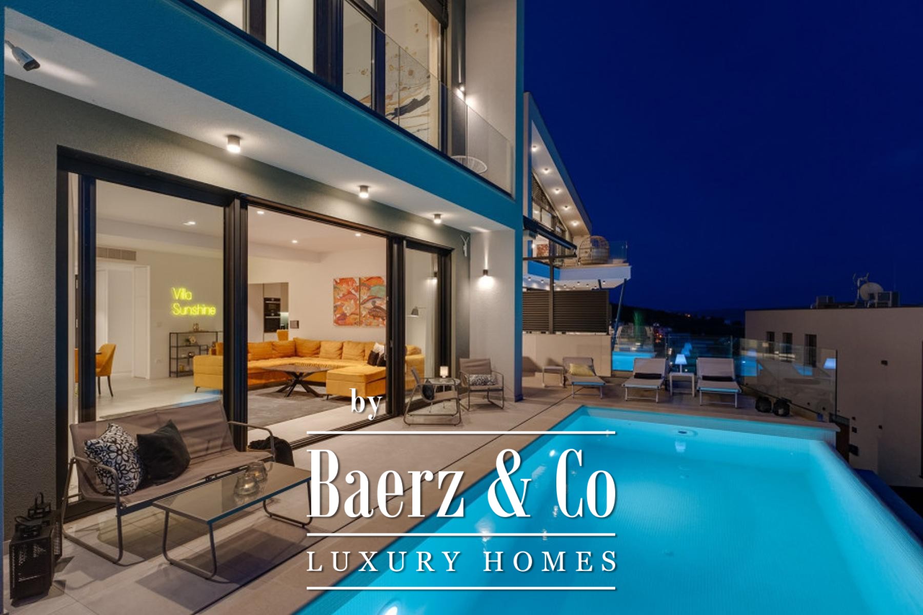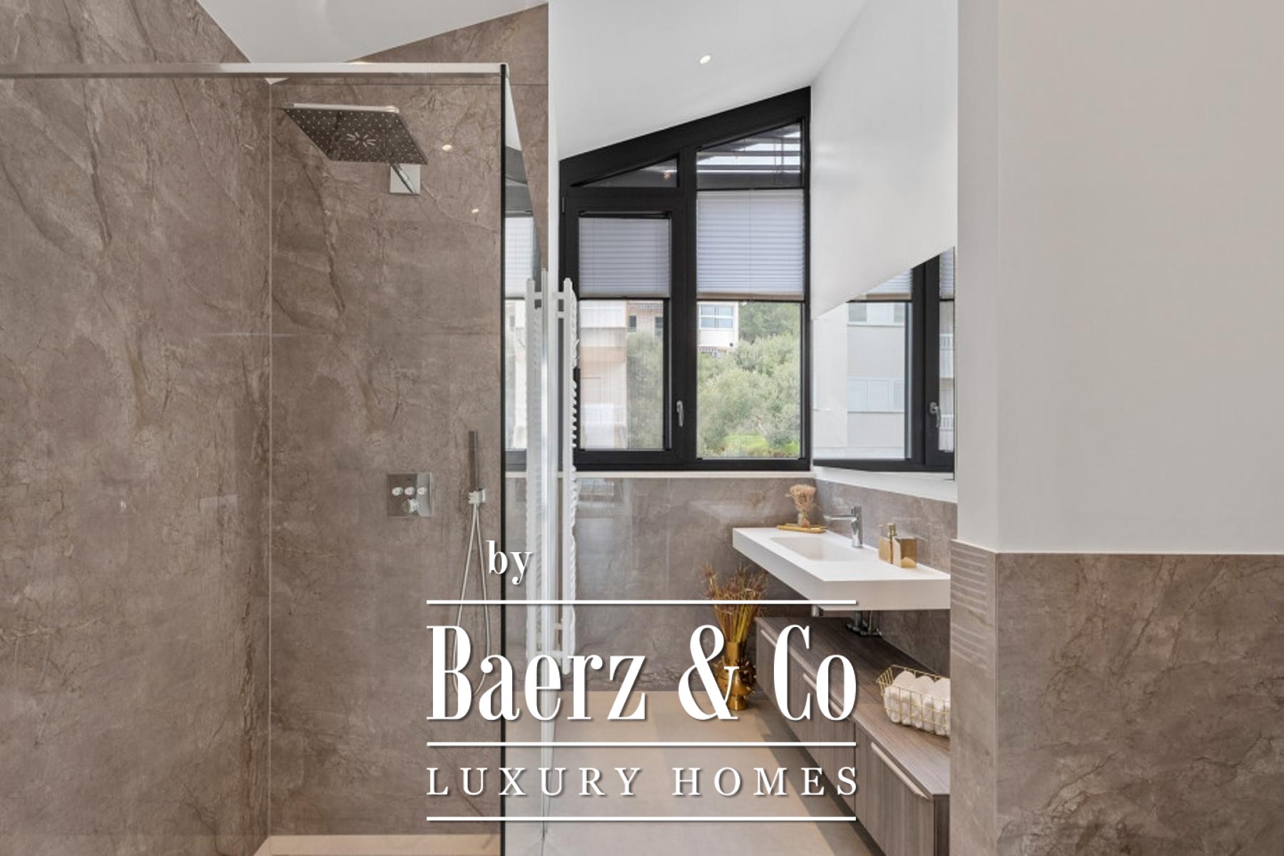 The villa offers three bedrooms, two bathrooms, and an additional guest toilet. All spaces are distinguished by clean lines and a sense of calm, accentuated by underfloor heating and smart home technology. Outside, a private pool and sunbathing area provide a discreet retreat, while two dedicated parking spaces add daily convenience.