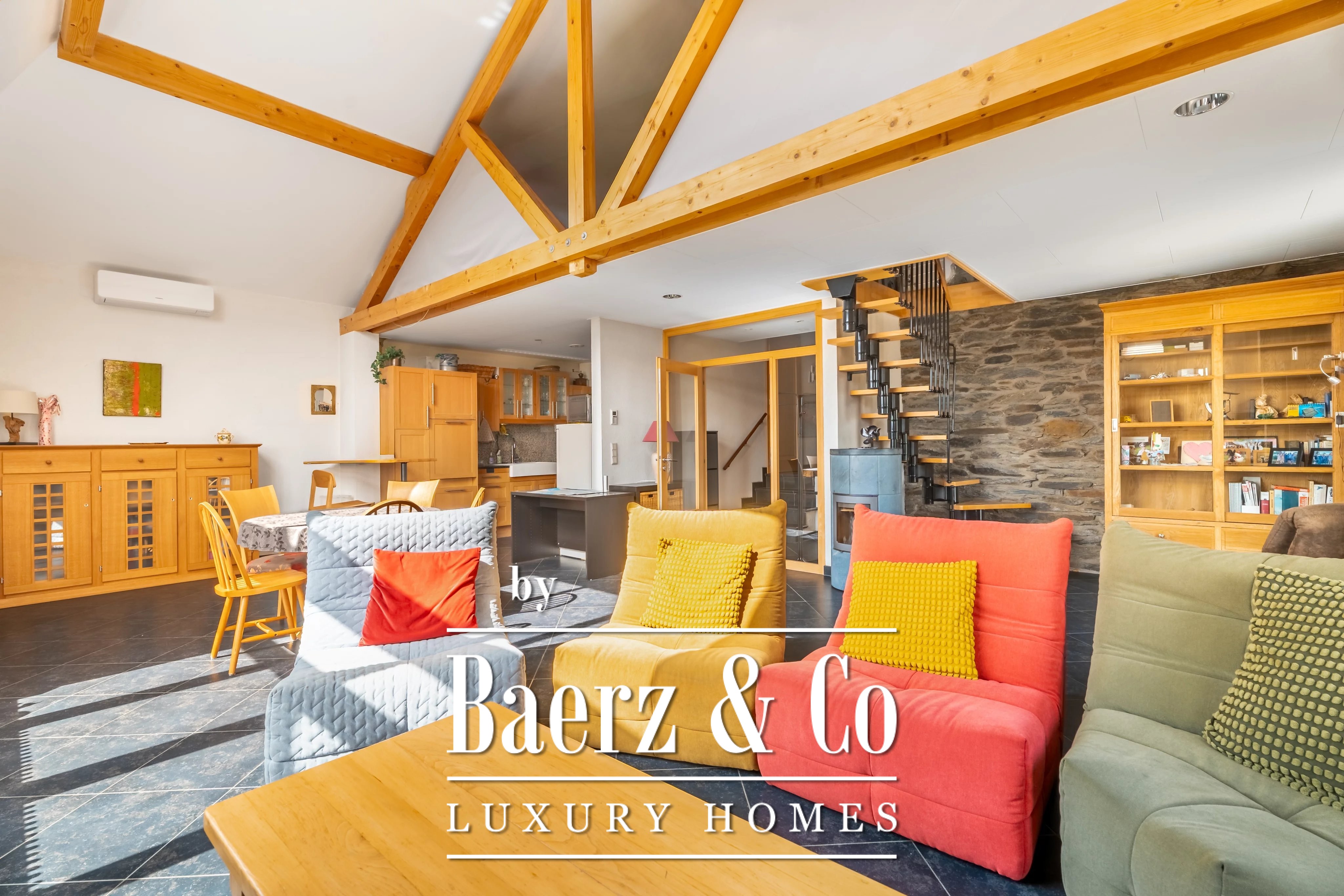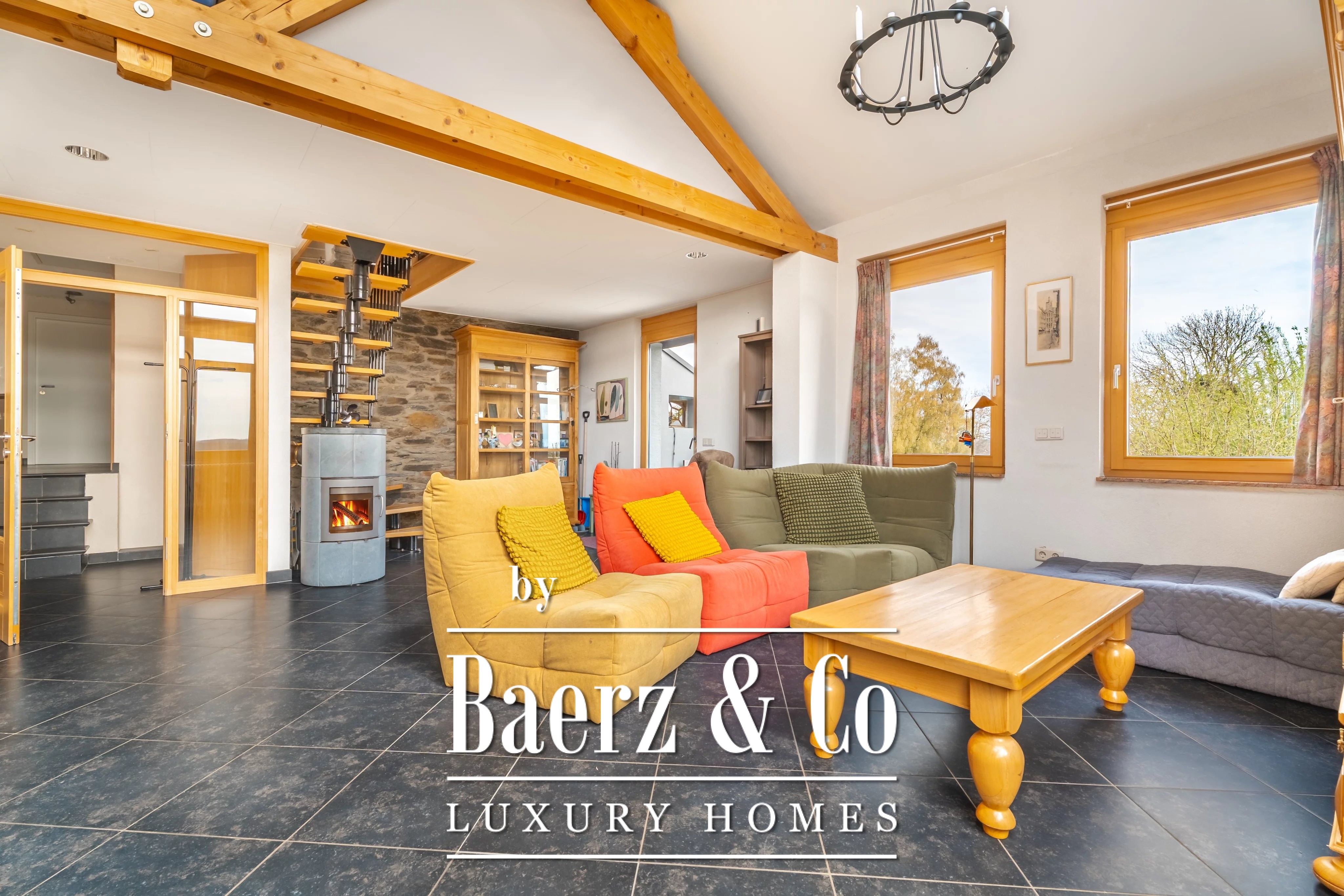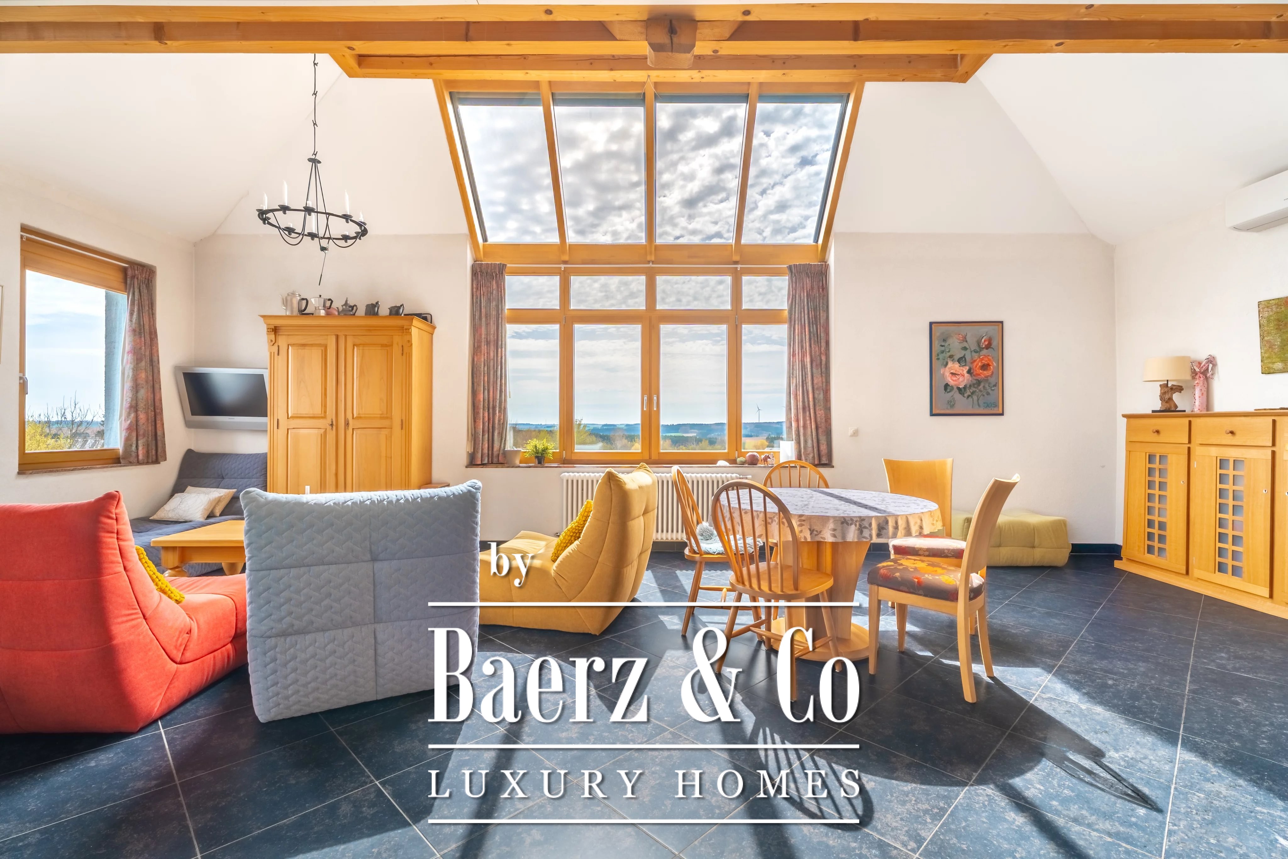 House Hautbellain offers a refined lifestyle set in a tranquil, countryside environment. This property spans 230 m² of living space, thoughtfully arranged into multiple accommodations that maximize privacy and comfort. The setting is defined by panoramic views over the hills of Eisleck, complemented by 4,930 m² of agricultural land and a mature orchard with apple, plum, cherry, and walnut trees.