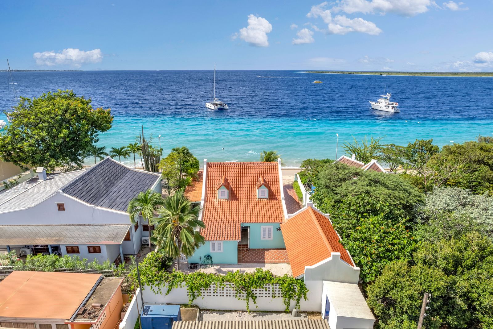 Kas Koral is an authentic Bonairean villa located directly along Kralendijk’s iconic boulevard. This unique oceanfront property offers the rare combination of privacy and tranquility, while the vibrant town center with restaurants, shops, and bars is just a short walk away.