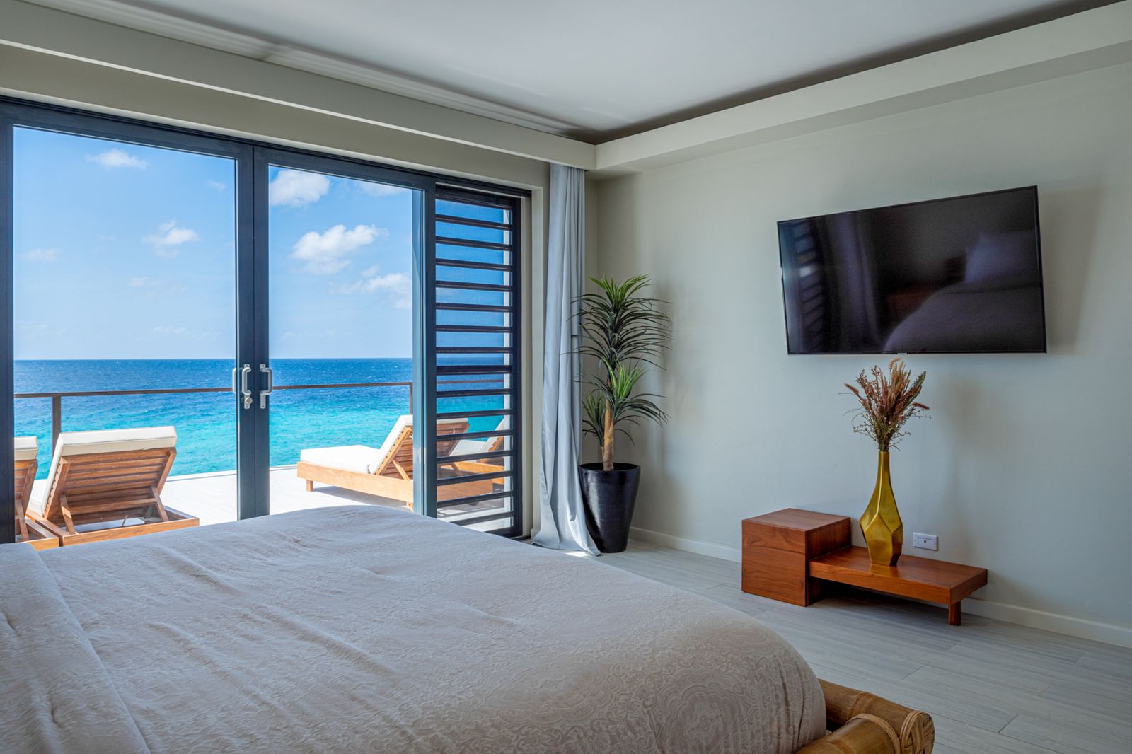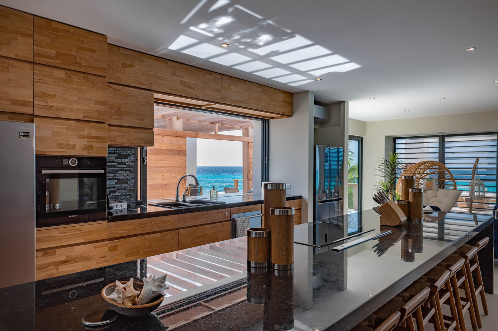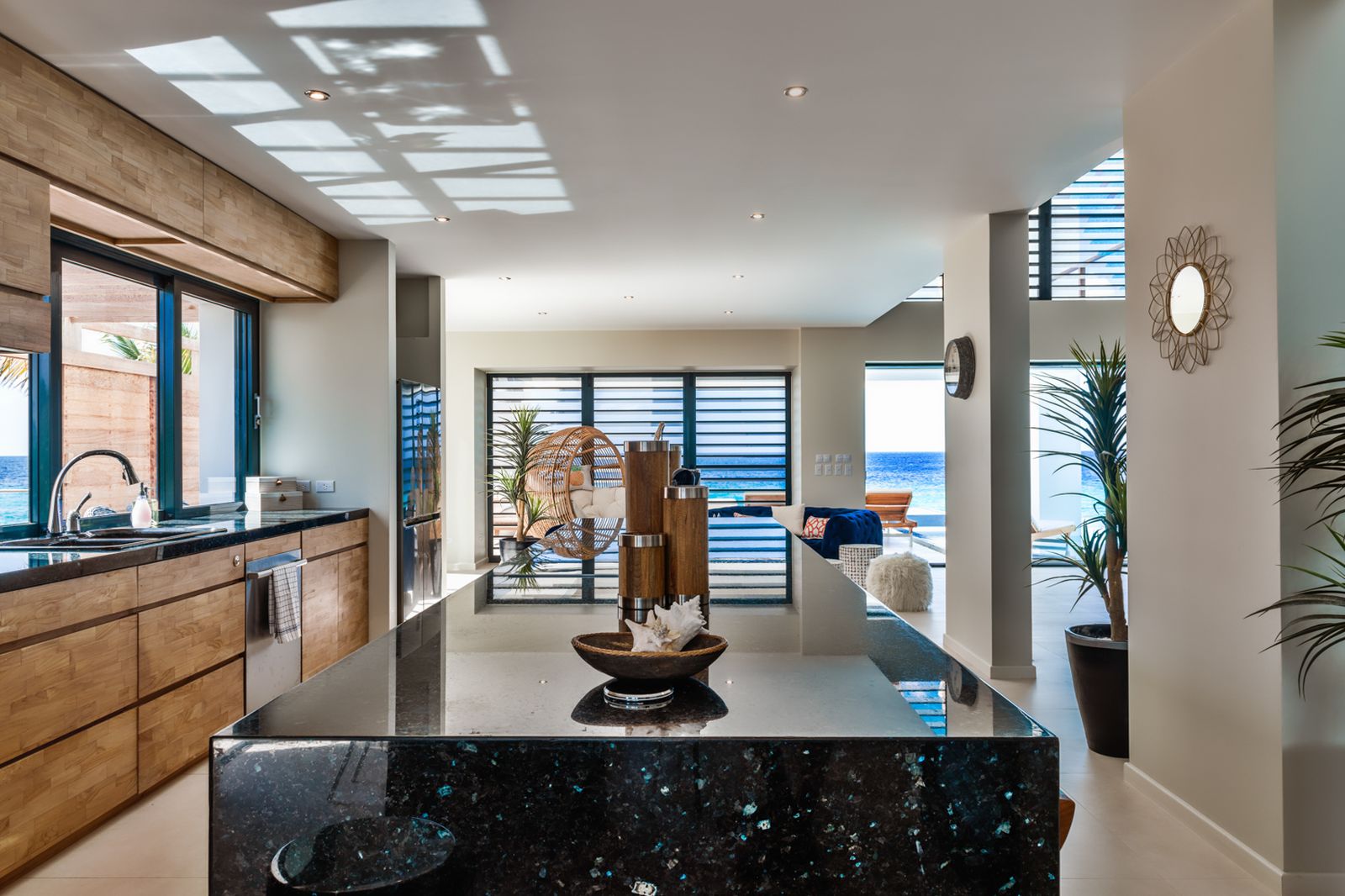 From the moment you step inside, the open design draws your eyes straight to the deep blue Caribbean Sea.