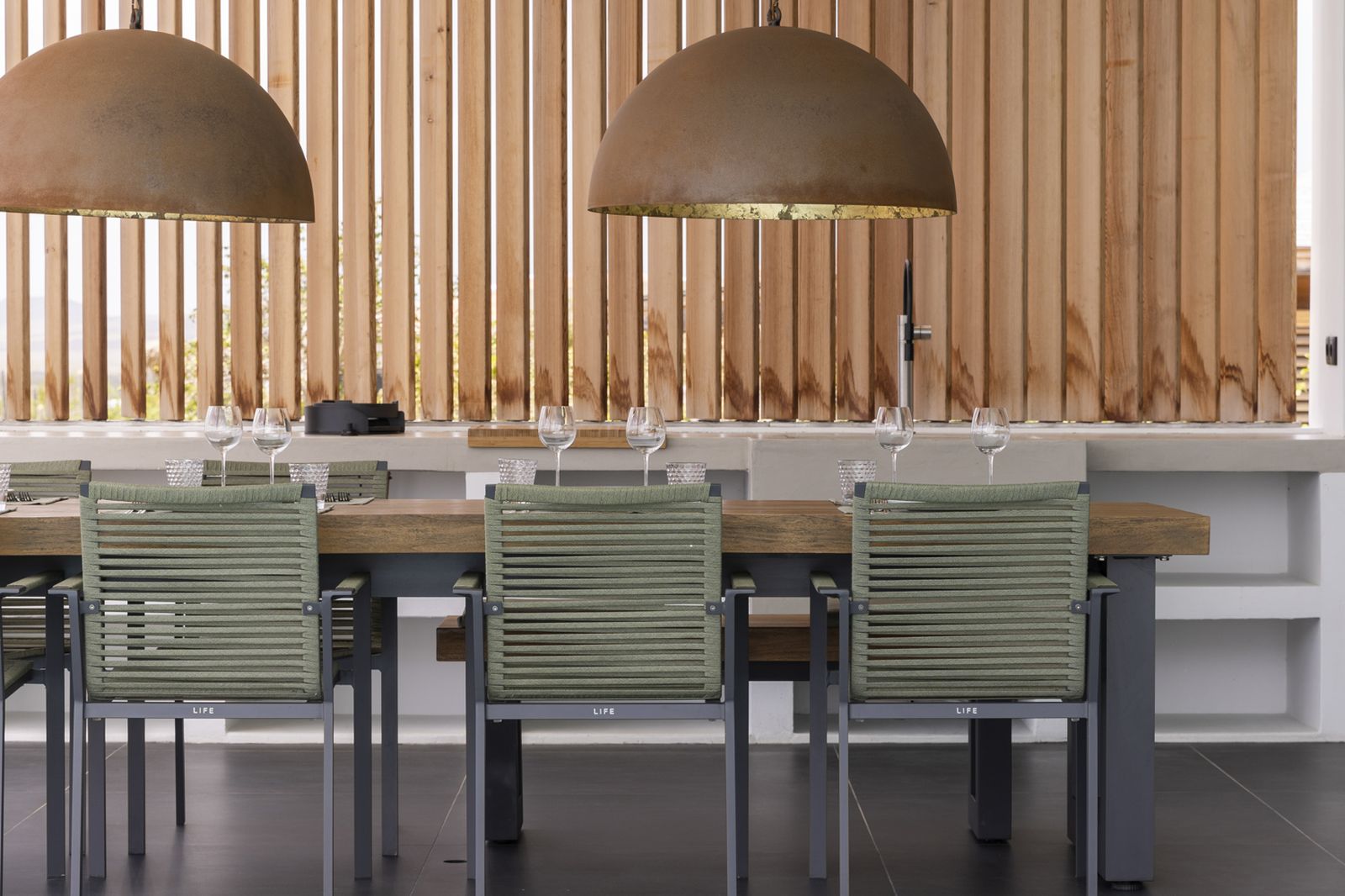 As you step through the large glass front door, you are greeted by panoramic views—ranging from Bopec in the north to the Salt Mountains in the south. Thanks to the large windows, the house is bathed in light, air, and space throughout.