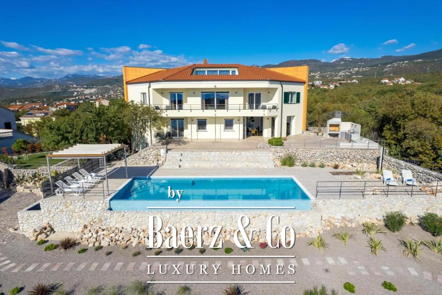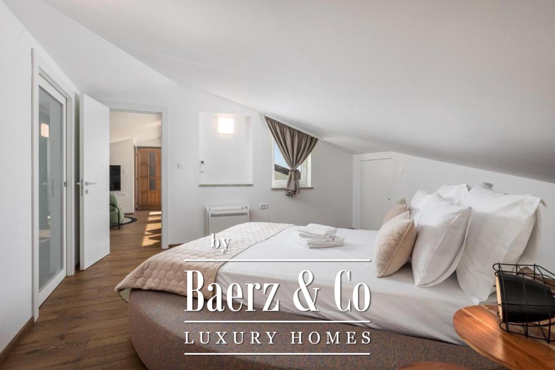 Set on a 1,585 m² plot, the property welcomes guests with a spacious private garage, a laundry, a hobby area, and a self-contained one-bedroom apartment in the basement, cultivating privacy and flexibility. The dedicated summer kitchen opens to a generous terrace with an infinity pool and sun deck, orchestrating sea views and tranquility.