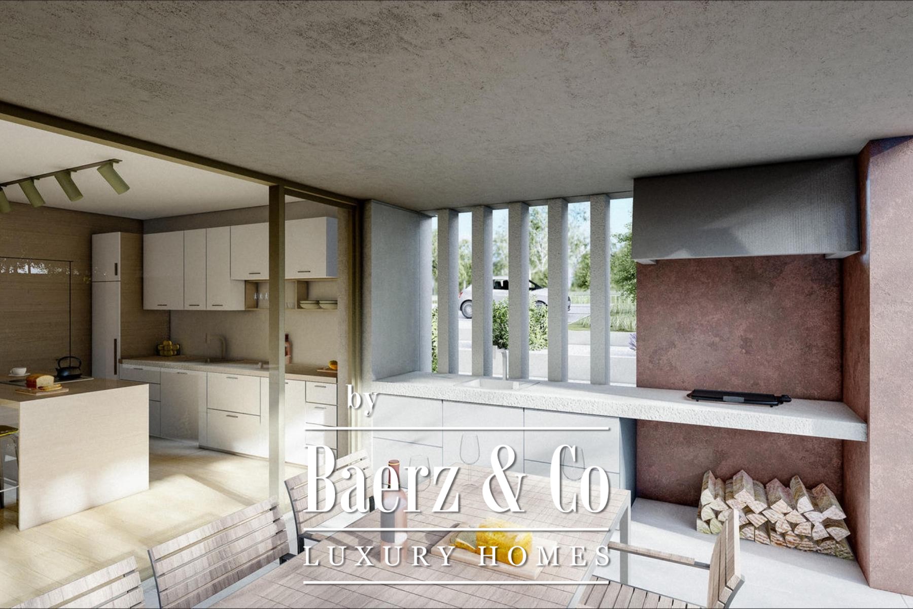 The ground floor is defined by a spacious 65 m² open-plan living area, kitchen and dining room, extending to a covered 19 m² terrace. Utility rooms, including internal and external storage, a sauna and fitness space, and a guest toilet provide purposeful flow. Beyond, a summer kitchen and covered terrace lead to a heated swimming pool of 48 m², complete with both shallow and deeper zones, ideal for family relaxation.