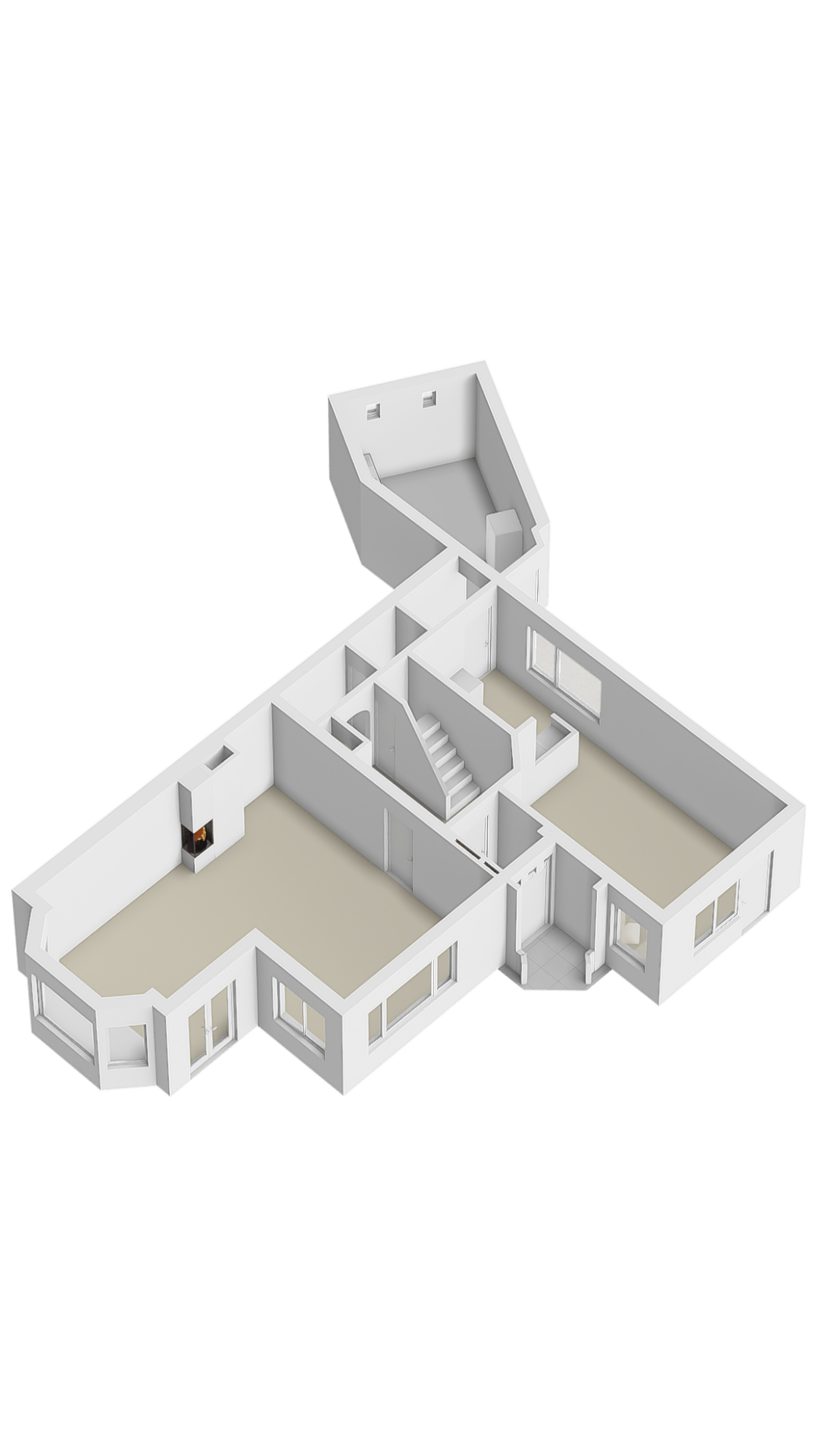 The ground floor reveals a stately entrance hall, where stained glass, original paneling and a central staircase connect all principal rooms. The L-shaped living room features a hearth and garden access, while the rear kitchen and adjacent utility space open directly to the garden, designed for gatherings and ease. Seven bedrooms span the upper levels, including rooms with direct access to a broad roof terrace and a playful attic arrangement with varying rooflines.