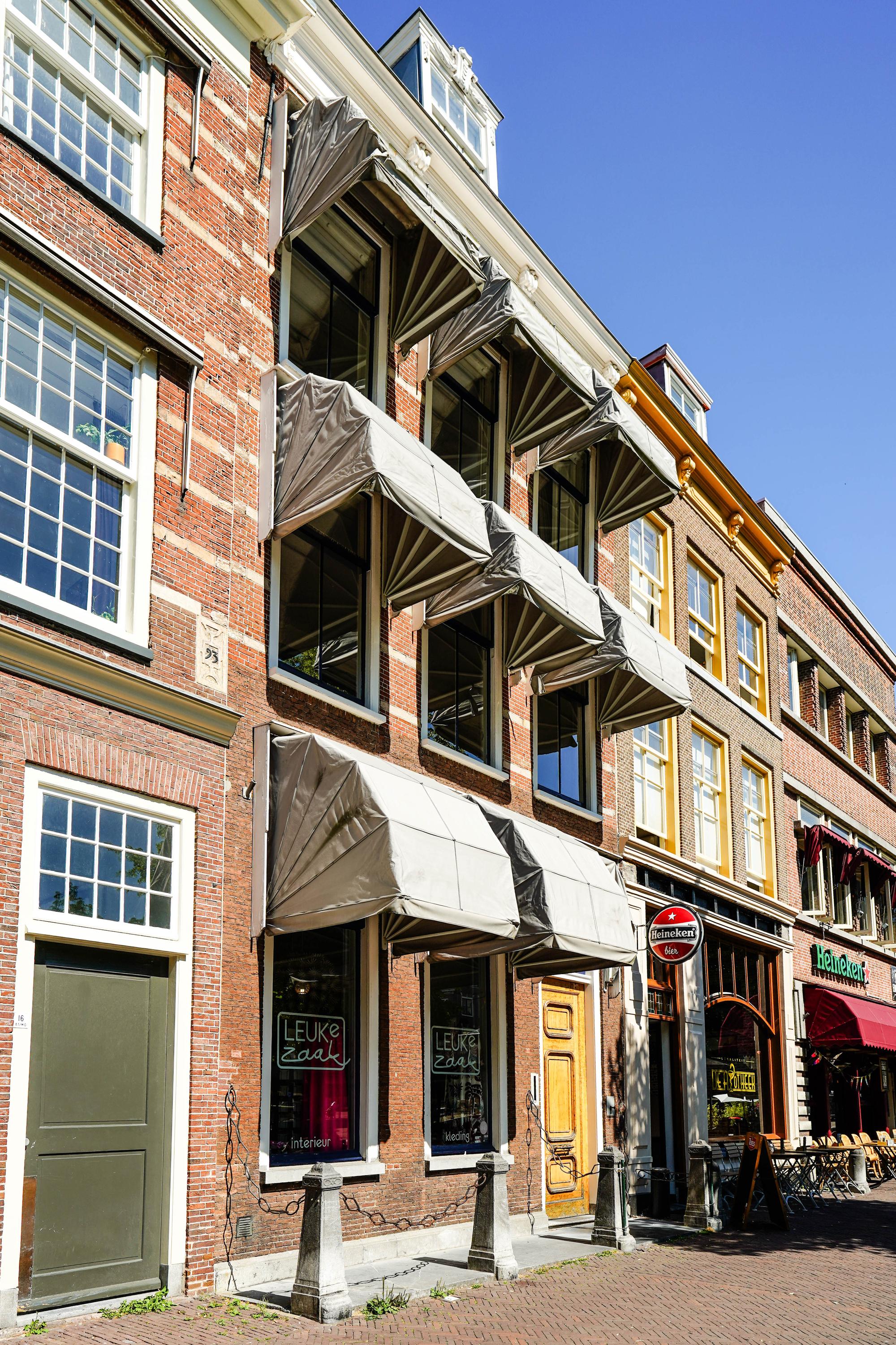 The rear house orients toward a lush, enclosed garden and the castle hill beyond, its light-filled rooms gazing over centuries-old greenery. Here, a garden room with an extra kitchen simplifies al fresco entertaining. The upper floors provide further versatility, with a second living room, fireplace, and potential office or guest quarters, complete with private facilities. All amenities of Leiden’s medieval city center are at your doorstep, with museums, markets, and restaurants within easy reach, while local transport and parking arrangements suit the rhythm of city living. National monument status and a setting within a protected cityscape affirm the property’s timeless place in the heart of Leiden.