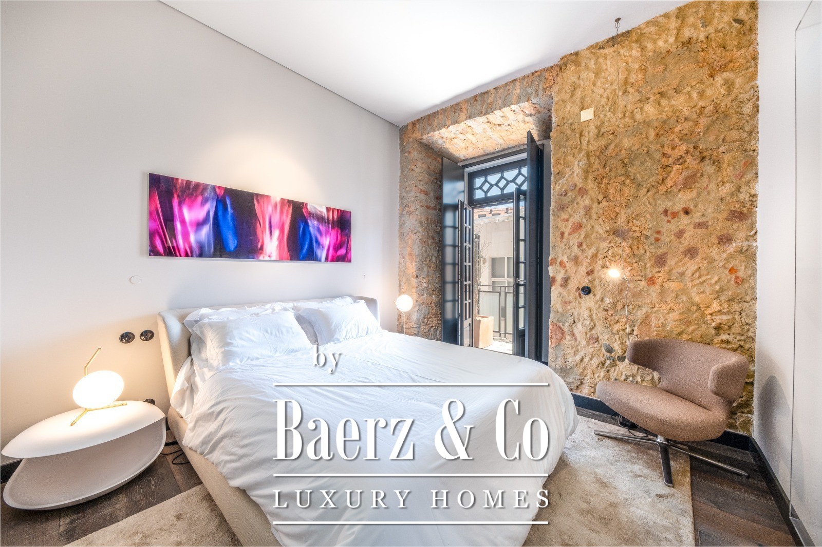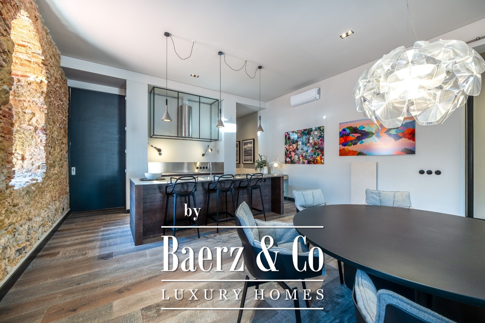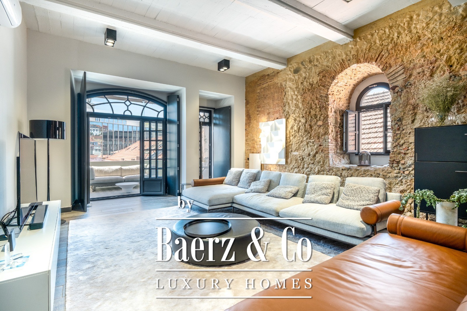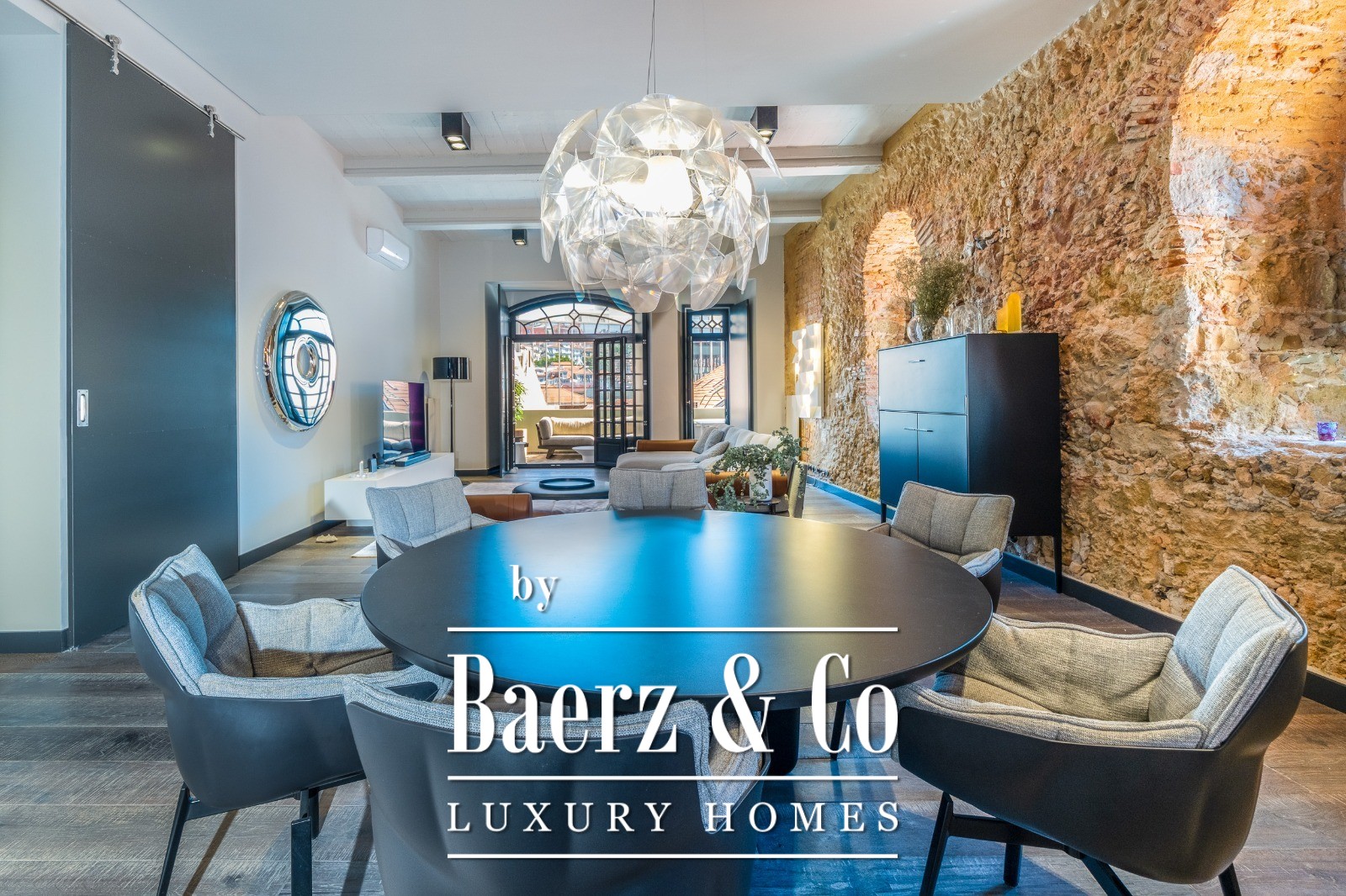 Located on a quiet cul-de-sac in Cais do Sodré, one of Lisbon’s most vibrant and historic neighborhoods, this 173 m² two-bedroom apartment offers a loft-style design with a distinct contemporary touch. Set on the second floor of a 19th-century building with elevator access, it underwent a full renovation in 2019 with meticulous attention to detail and high-quality materials.The generous living area impresses with 3.7 m high ceilings, a striking 14 m exposed stone wall, and large arched windows that fill the space with natural light thanks to its south and east orientation. The kitchen is seamlessly integrated with the living room, combining design and functionality with stainless steel countertops, oak cabinetry, and statement lighting.The living experience extends