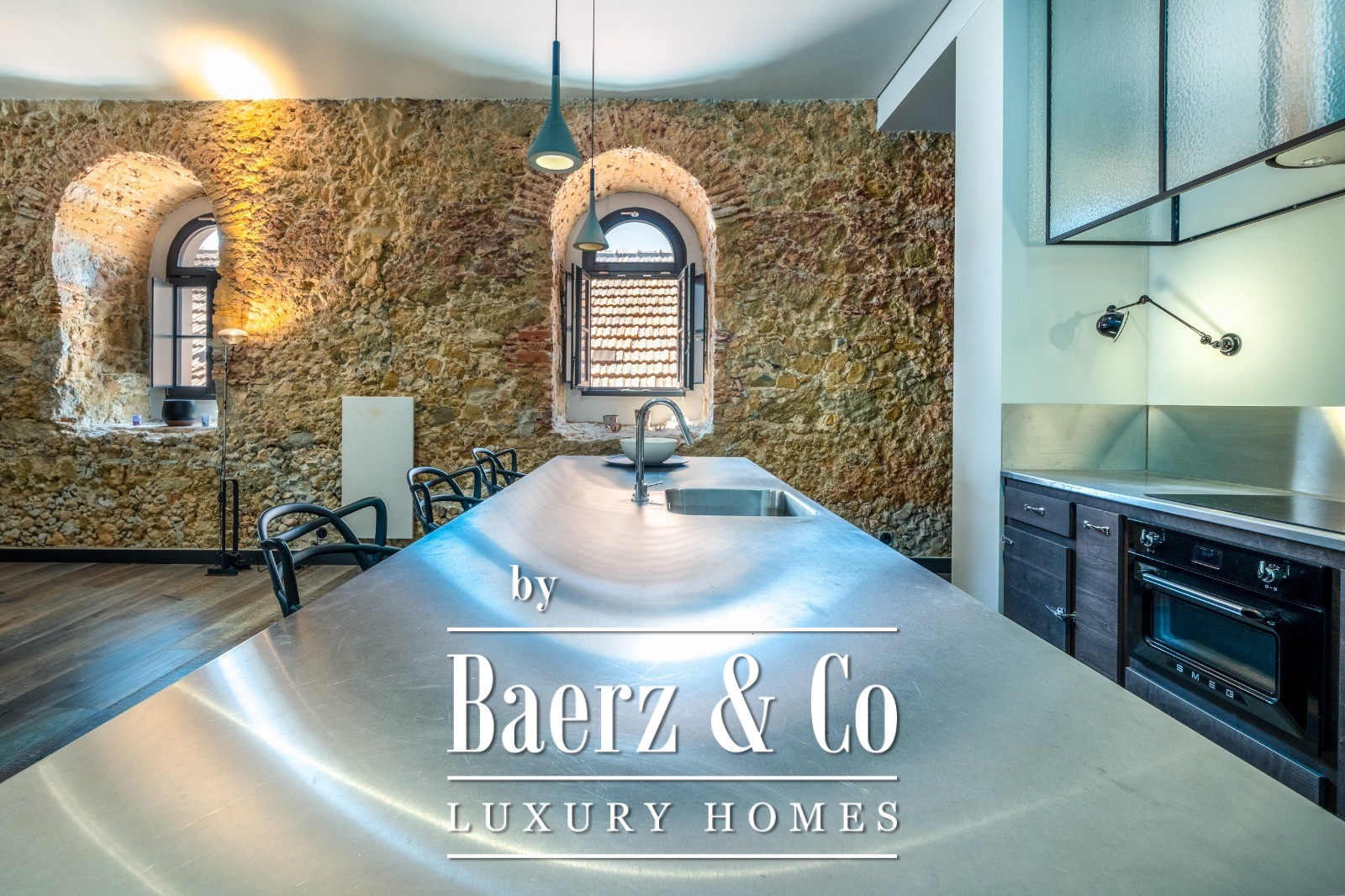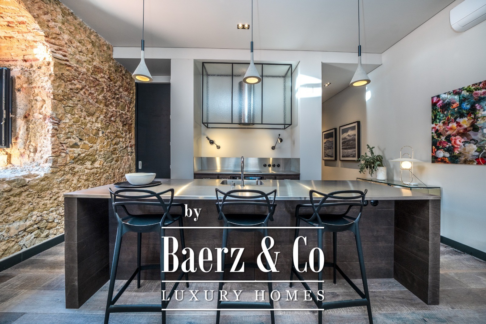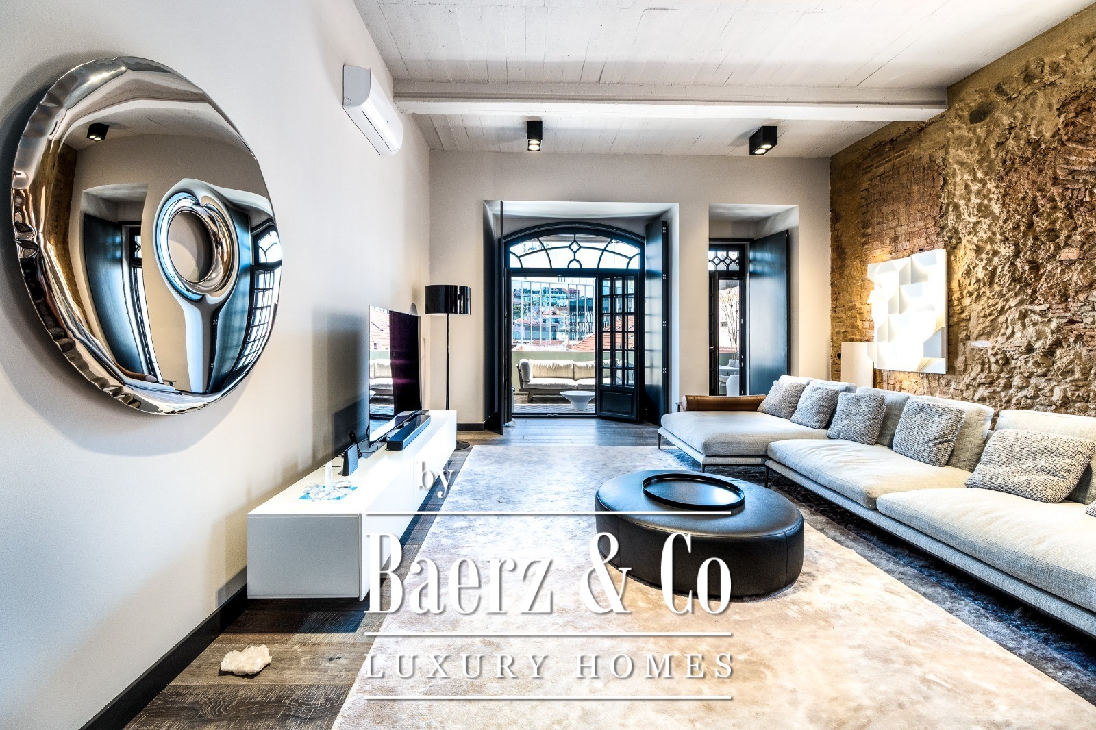 Located on a quiet cul-de-sac in Cais do Sodré, one of Lisbon’s most vibrant and historic neighborhoods, this 173 m² two-bedroom apartment offers a loft-style design with a distinct contemporary touch. Set on the second floor of a 19th-century building with elevator access, it underwent a full renovation in 2019 with meticulous attention to detail and high-quality materials.The generous living area impresses with 3.7 m high ceilings, a striking 14 m exposed stone wall, and large arched windows that fill the space with natural light thanks to its south and east orientation. The kitchen is seamlessly integrated with the living room, combining design and functionality with stainless steel countertops, oak cabinetry, and statement lighting.The living experience extends