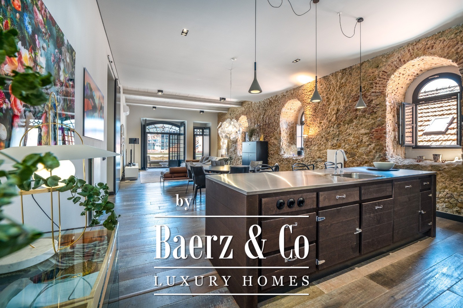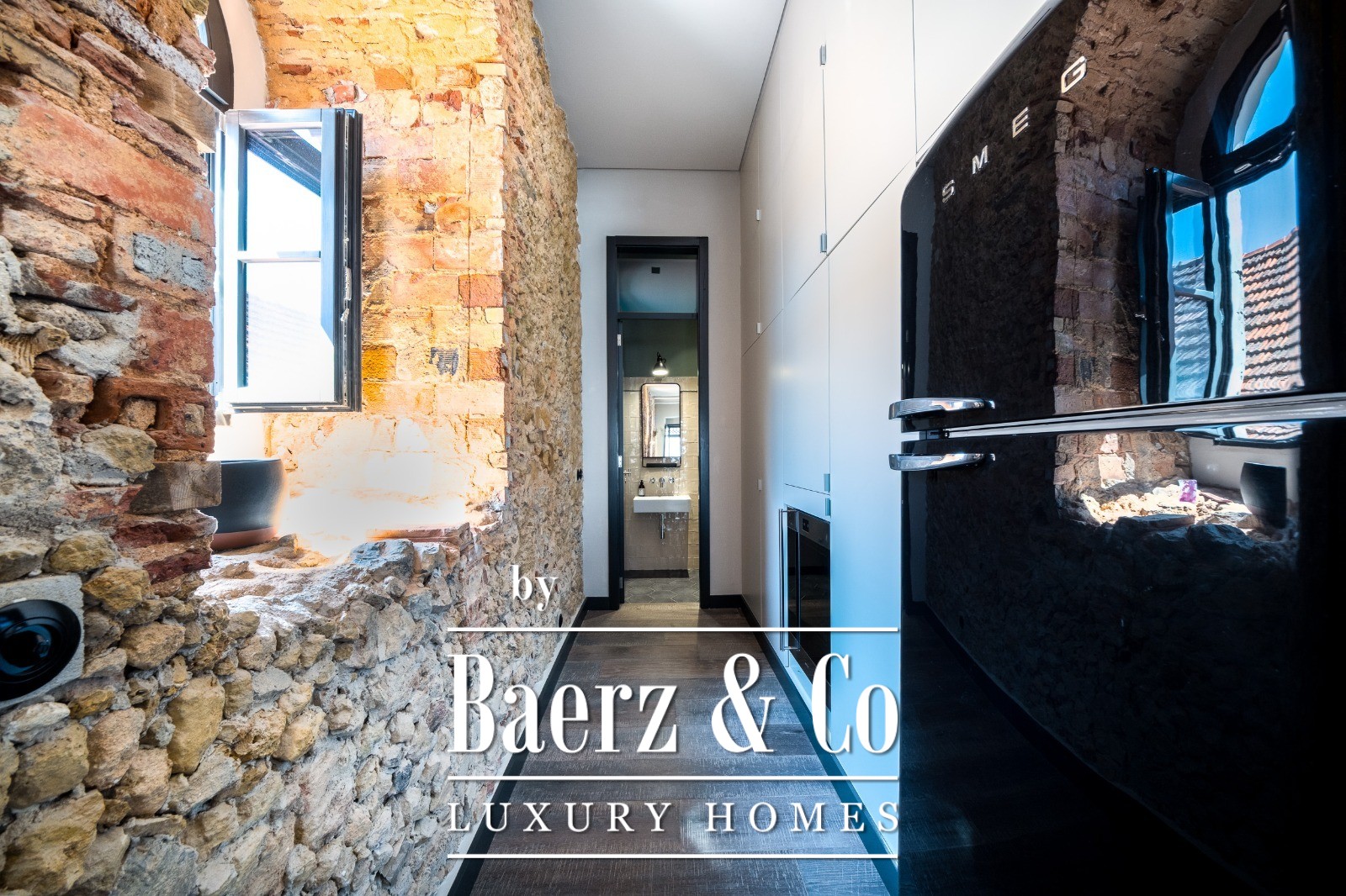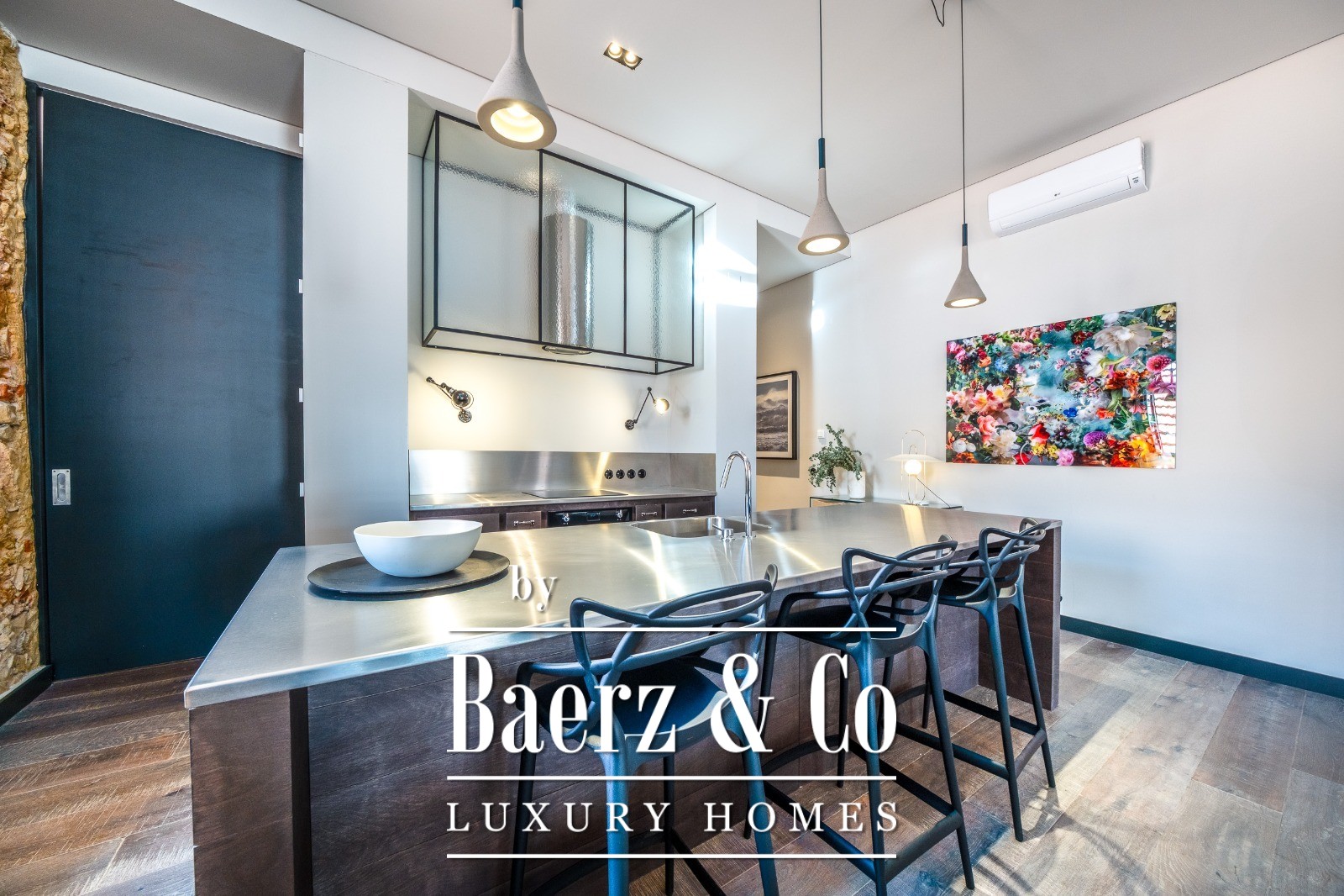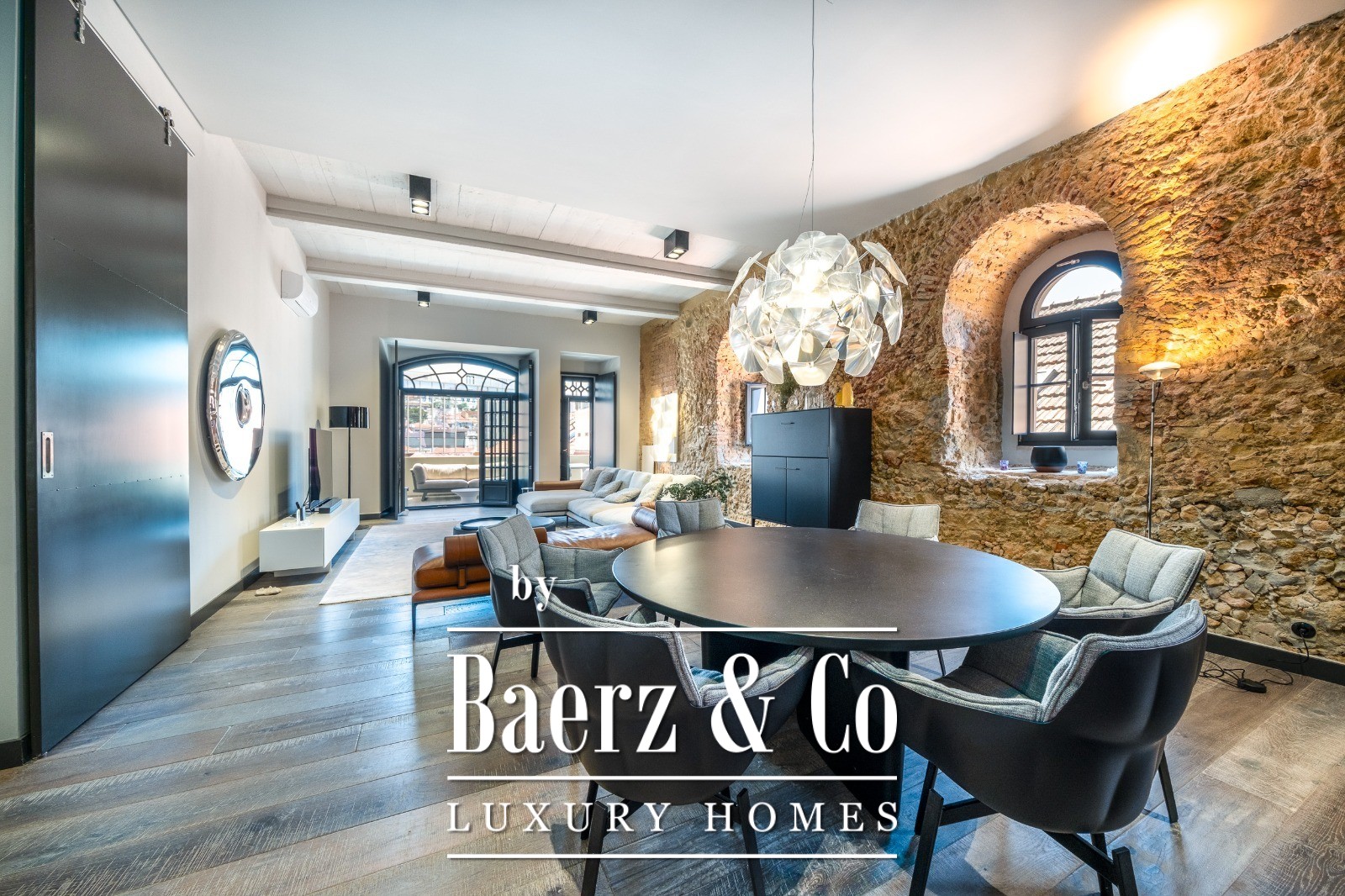 Located on a quiet cul-de-sac in Cais do Sodré, one of Lisbon’s most vibrant and historic neighborhoods, this 173 m² two-bedroom apartment offers a loft-style design with a distinct contemporary touch. Set on the second floor of a 19th-century building with elevator access, it underwent a full renovation in 2019 with meticulous attention to detail and high-quality materials.The generous living area impresses with 3.7 m high ceilings, a striking 14 m exposed stone wall, and large arched windows that fill the space with natural light thanks to its south and east orientation. The kitchen is seamlessly integrated with the living room, combining design and functionality with stainless steel countertops, oak cabinetry, and statement lighting.The living experience extends