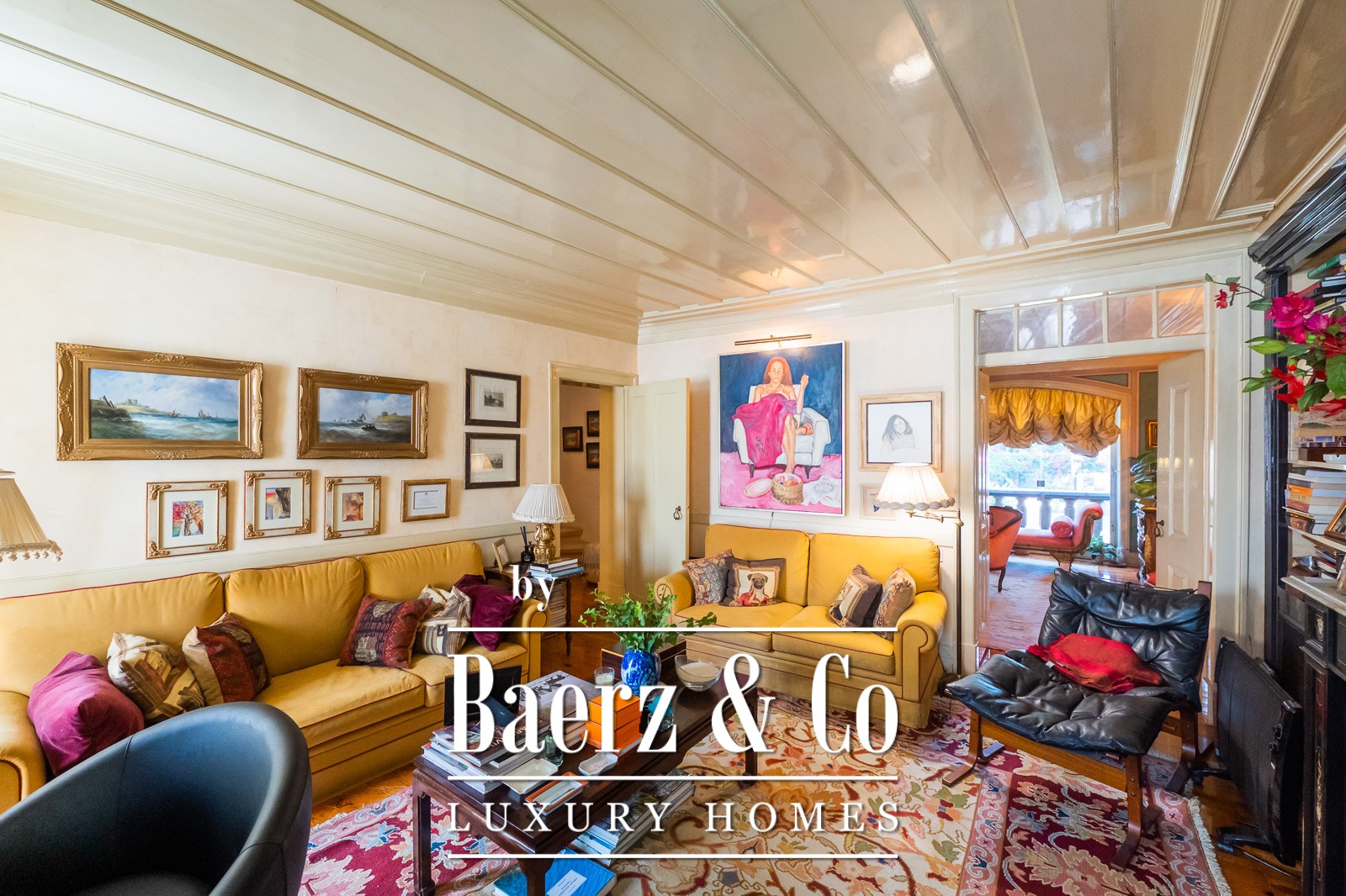 Discretion shapes each corner of this property. Six bedrooms and multiple living rooms form an adaptable spatial rhythm, while the Tudor-style kitchen, service lift, and hardwood floors reflect a thoughtful attention to quality. Details such as frescoes from the Ricardo Espírito Santo Foundation and antique tiling connect each room to the district's distinctive history.