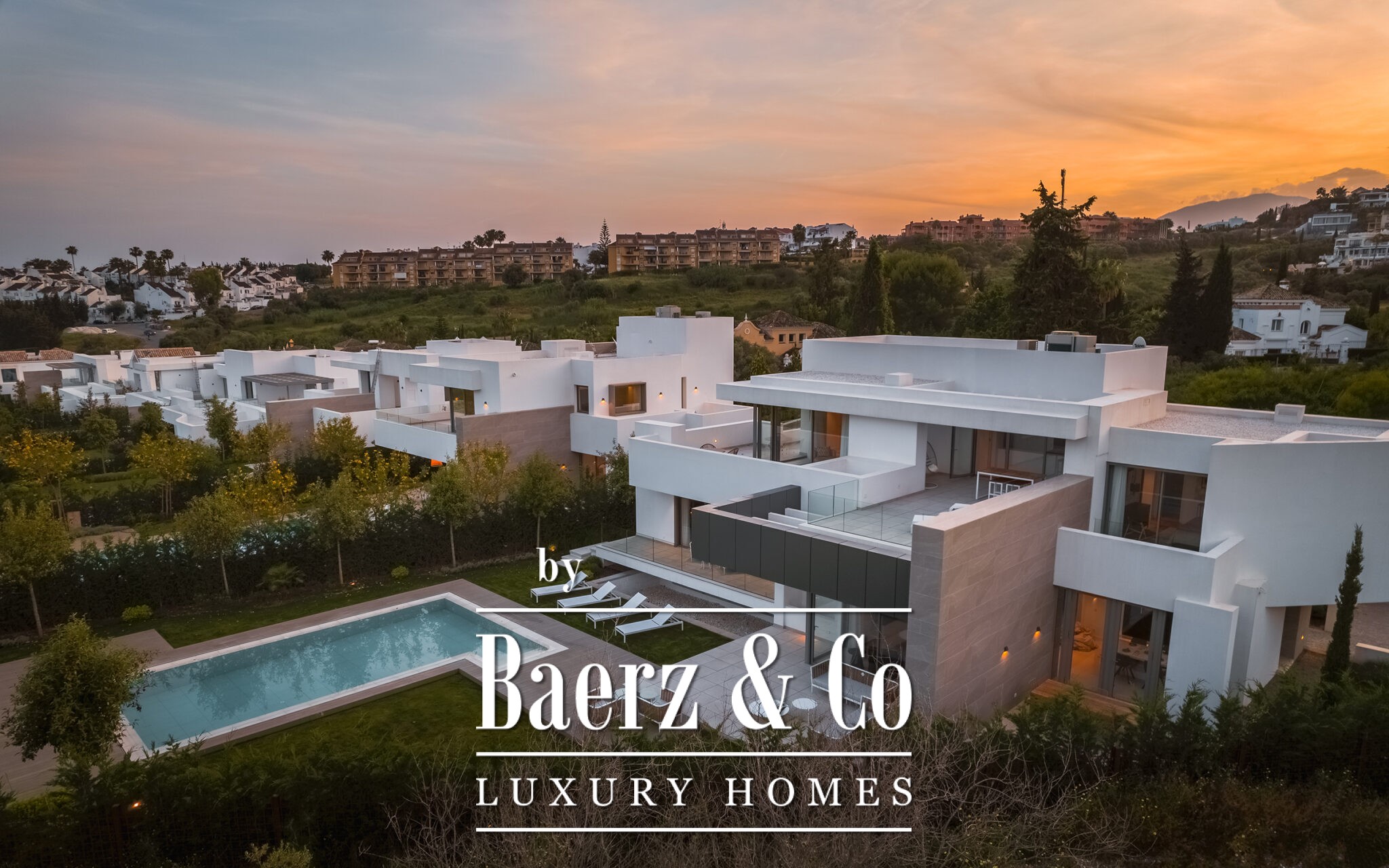 Villa Marbella in El Paraiso offers a tranquil and sophisticated setting among the Andalusian hills, surrounded by the exclusivity of a select gated community of just nine residences. This villa, with 626 m² of living space set upon an 808 m² plot, is designed for those seeking seclusion and easy proximity to Marbella, Estepona, and the coast. Villa Marbella in El Paraiso presents clean lines and generous south to southeast orientation, ensuring interiors are flooded with natural light. Floor-to-ceiling glazing connects open-plan living spaces and a sculptural, high-end German kitchen to terraces, private landscaped gardens, and a personal swimming pool. Each bedroom features en-suite bathrooms, elegant wood flooring, and muted, contemporary finishes—combining Villeroy & Boch fixtures, grey marble tiling, and thoughtful lighting. The residence privileges comfort and refinement, with amenities such as underfloor heating, hot and cold air conditioning, home automation, and a fireplace. Two covered parking spaces, intelligent movement sensors, and a multi-purpose basement—ideal for a gym or cinema—complete the offering. The surrounding El Paraiso enclave is serviced by renowned golf courses, international schools, boutiques, and fine dining, supporting a pace of life defined by discretion and access.