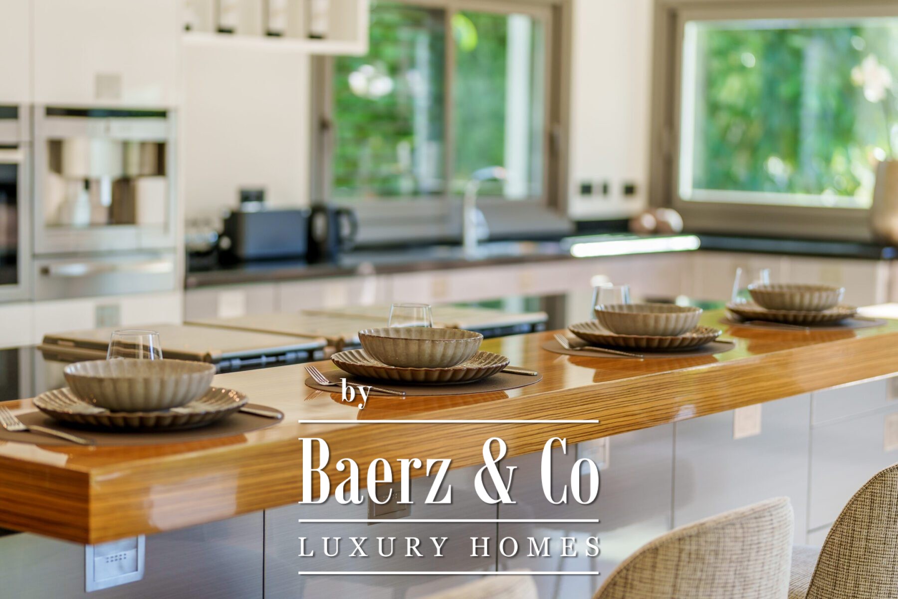Stepping inside, the rhythm of the house is established as light and landscape intertwine. All five bedrooms, each serene, open directly onto the mature gardens; generous living spaces include two voluminous lounges, an open-plan professional Danespan kitchen with a central island, and a tranquil library and office. The villa offers five bathrooms, including two en-suite bedrooms with private garden access, as well as wraparound covered terraces crafted for year-round enjoyment.