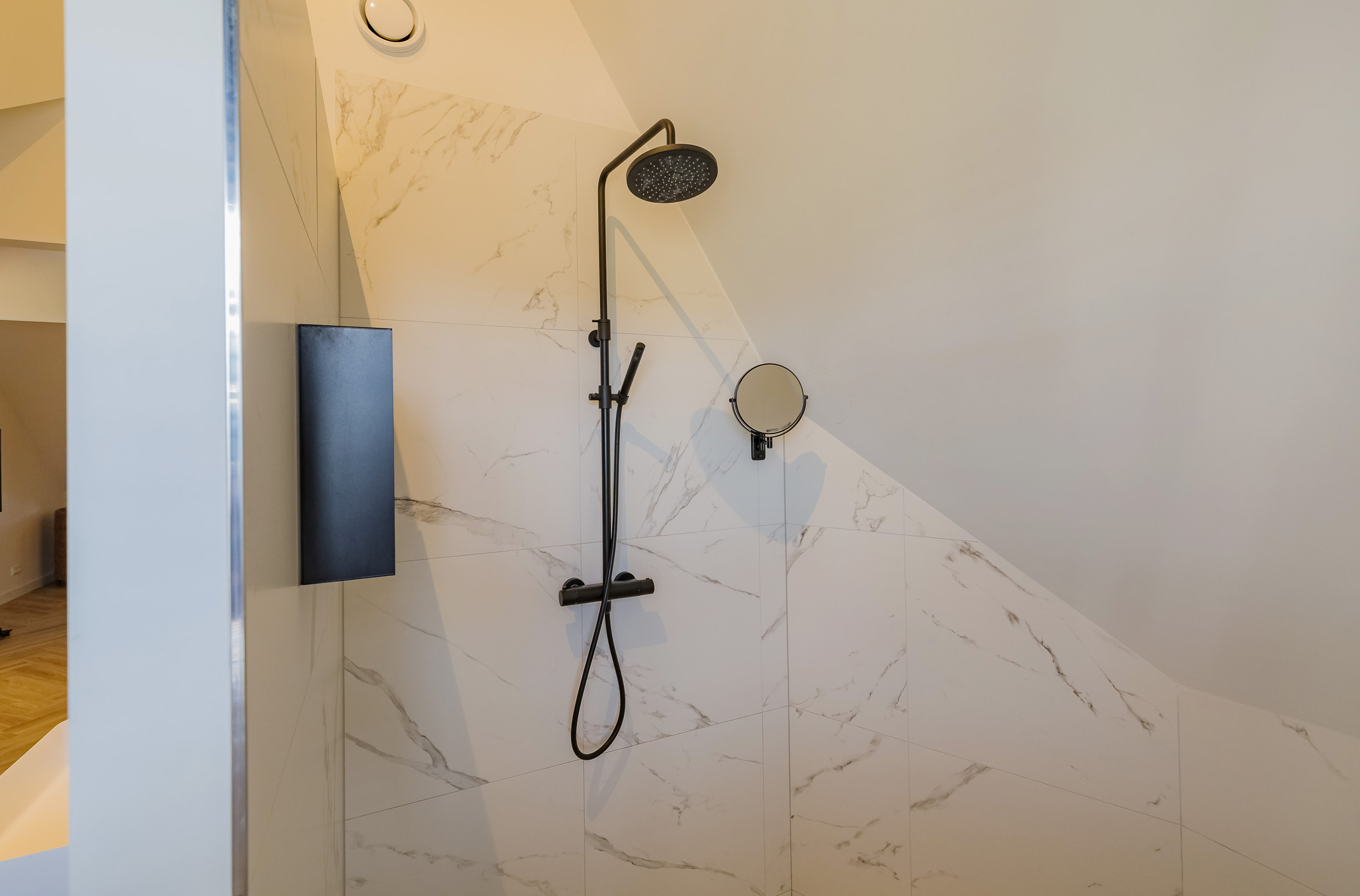 The second floor is a wonderful private retreat: a spacious bedroom with its own walk-in closet and a spacious, luxurious bathroom. An ideal place to completely unwind. There is also a laundry/boiler room with a Japanese toilet.