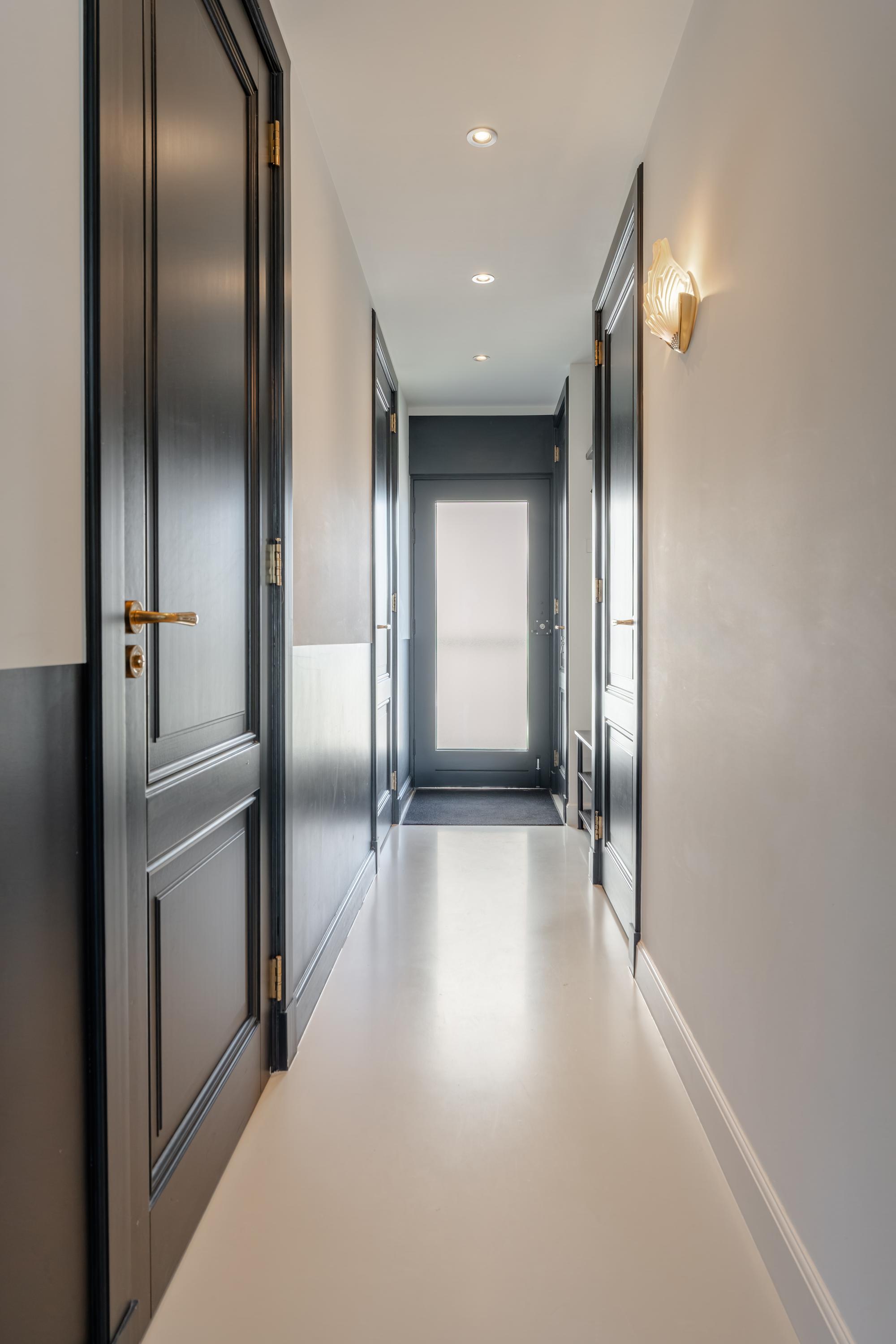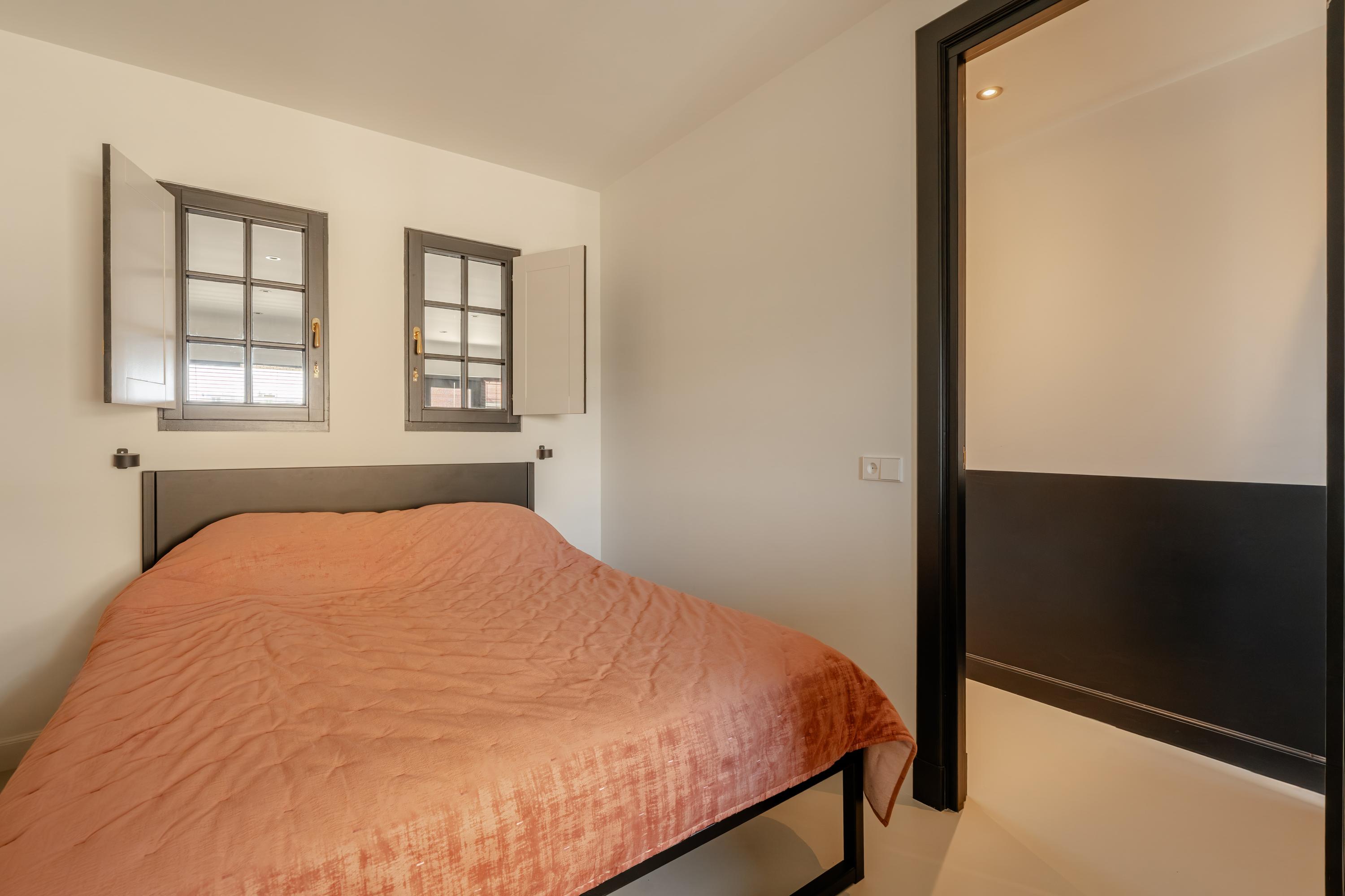 Inside, the apartment has been finished to a high standard with great attention to detail. Clean lines, a calm palette, and high-quality materials create an interior that feels instantly welcoming. The black floor-to-ceiling doors add a distinctive and elegant touch, evoking a subtle boutique hotel atmosphere.