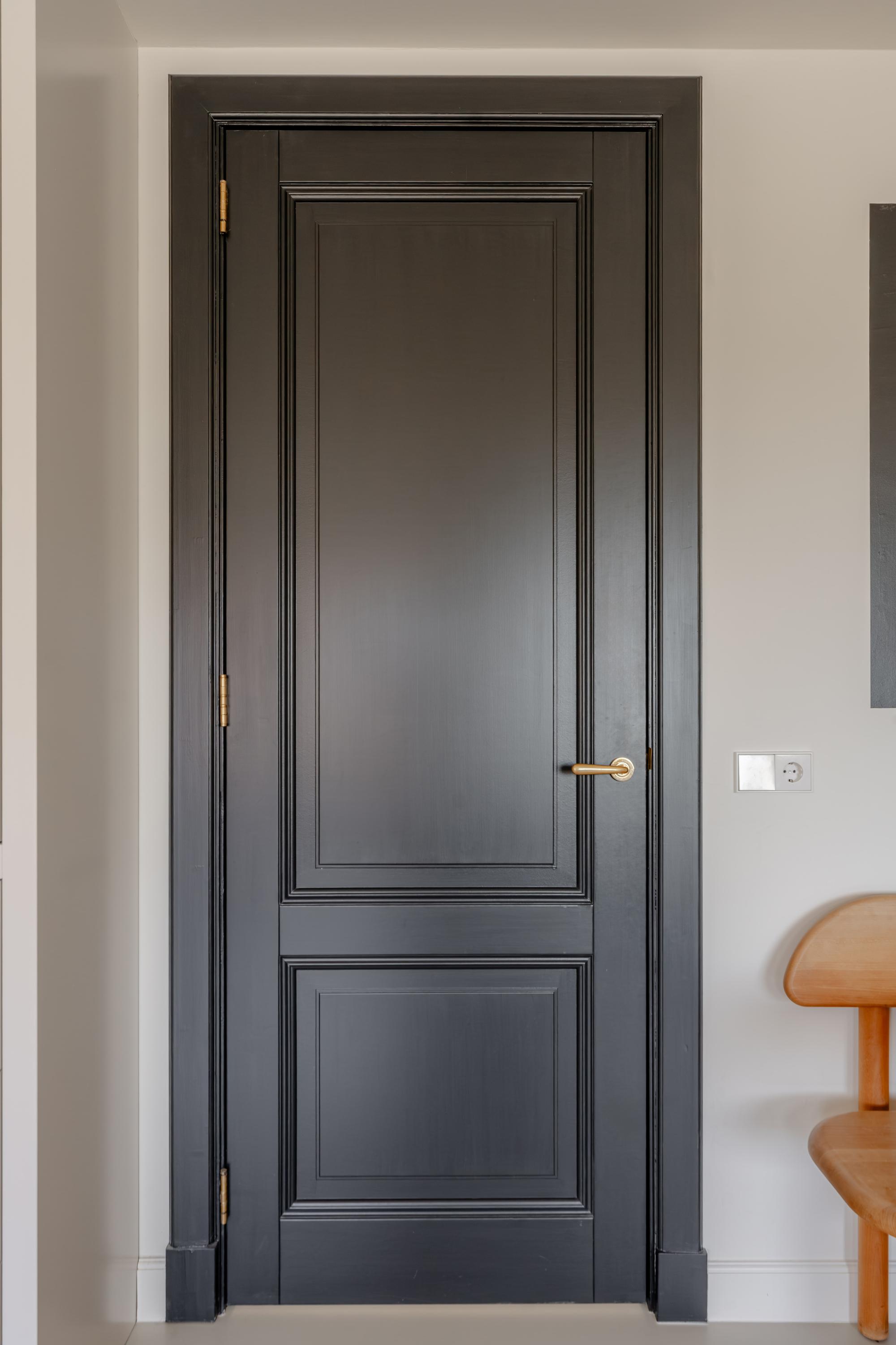 + Black floor-to-ceiling doors with a hotel-chic look;