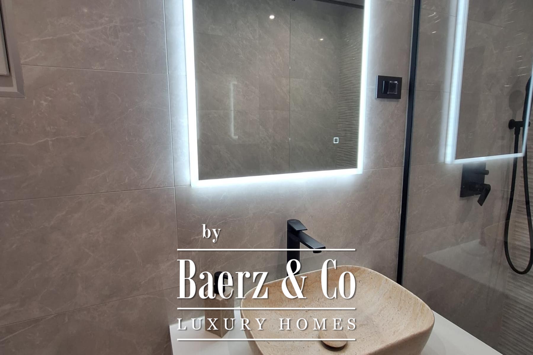 The layout is carefully orchestrated for contemporary comfort and elegant privacy. The lower level introduces a dedicated wellness area, a gym, and a space for sports or recreation, complemented by a practical laundry room. On the ground floor, a spacious living room connects seamlessly with an open kitchen and dining area, while a guest toilet and a bedroom with en-suite bathroom add versatility to the plan.