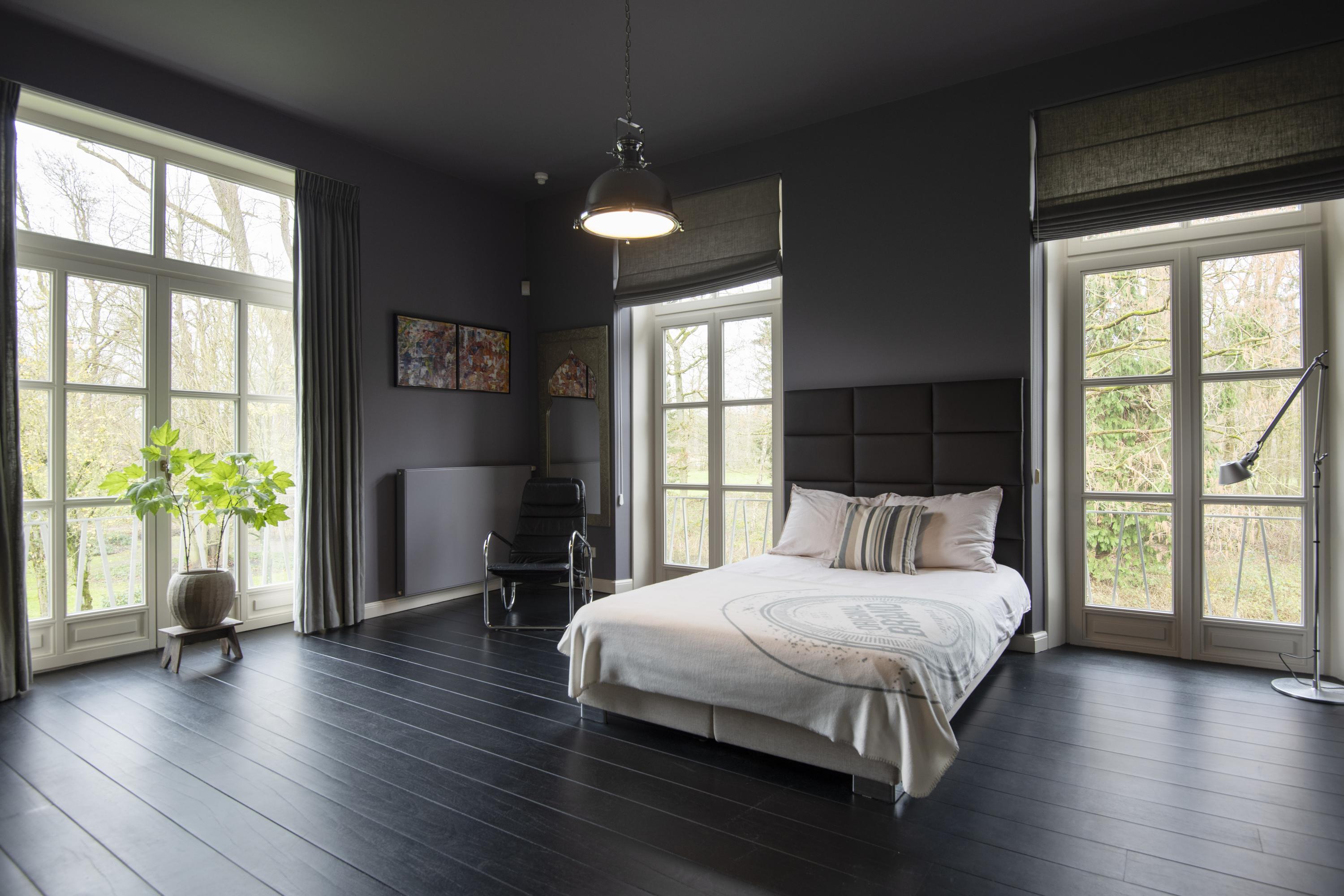 The imposing staircase leads to the second floor. The eye-catcher on this floor is the suite; a nature-oriented bedroom of 45 m2 with high stucco ceiling, three pairs of double doors to the French balconies, an adjoining dressing room and private bathroom. From this suite is also access to the tower where there is space for a shoe collection if desired. On this floor are two more bedrooms, also with French balconies. Between these bedrooms is the 2nd bathroom with double sink vanity, walk-in shower and toilet. On the landing is another separate 2nd toilet. The floor in the suite is covered with luxury carpet and the floors of the other two bedrooms are covered with parquet. This floor is also fully equipped with underfloor heating.
