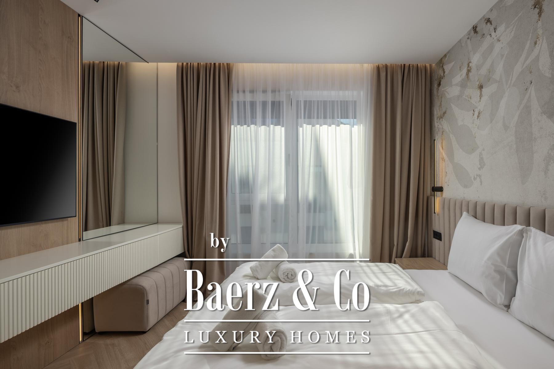 Modern materials and discreet detailing set the tone throughout, supported by a garage, two dedicated parking spaces, and additional storage to lend practical ease. The apartment is situated in a new building, providing contemporary infrastructure while inviting a sense of timelessness through curated furnishings and harmonious spaces.