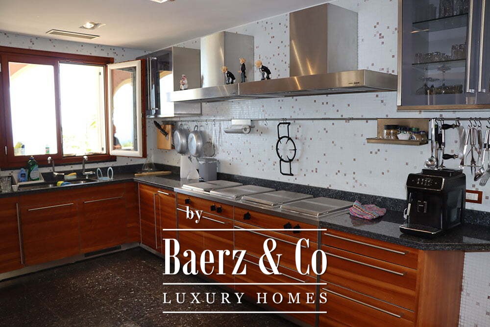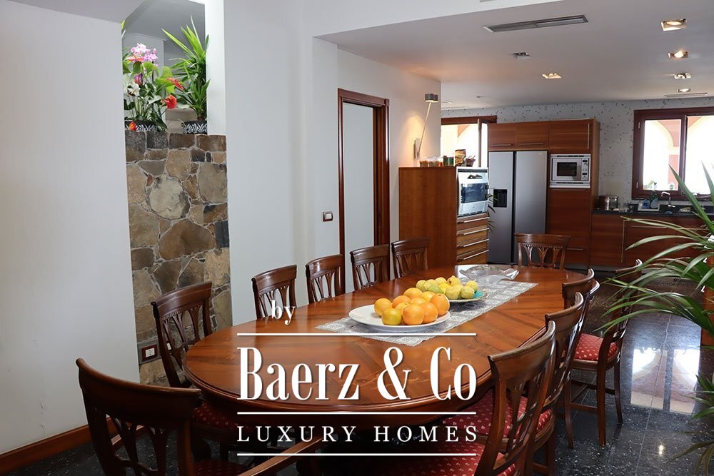Ascending to the first floor reveals eight bedrooms and six bathrooms. The master suite features an office, a walk-in closet, a spacious ensuite with jacuzzi, and private access to the terrace. The villa is framed by a 2,000 m² plot, balancing privacy with effortless entertaining. This property offers a unique vantage for those who value Mediterranean light and coastal serenity.