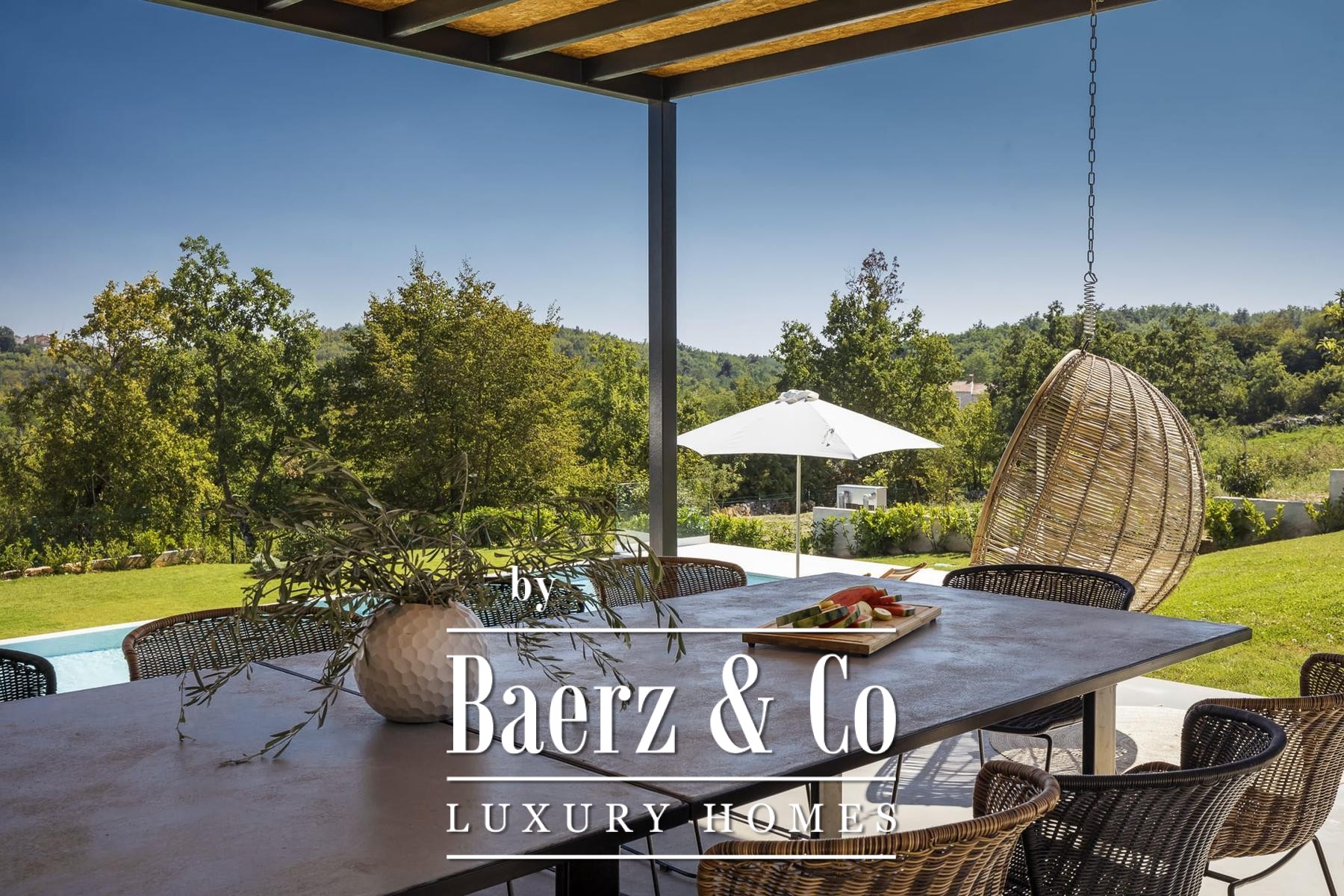 dining area and manicured gardenLarge glass surfaces allow for plenty of natural light and unobstructed views of the surrounding nature, creating a perfect connection with the outdoors. The entire villa exudes sophistication, and the attention to detail and selection of top-quality materials guarantee durability and a high level of comfort.The villa is fully equipped and ready to move in or continue a successful tourism business. Thanks to its peaceful location, spacious plot and high standards of construction, Villa 1 represents a rare opportunity on the market - a combination of luxurious living and a secure investment in one of the most sought-after regions in Istria.The villa has a notable success and numerous awards behind it - an ecological certificate, excellent professional ratings and competitiveness at the European level.For more information or to arrange a viewing, we are at your disposal.