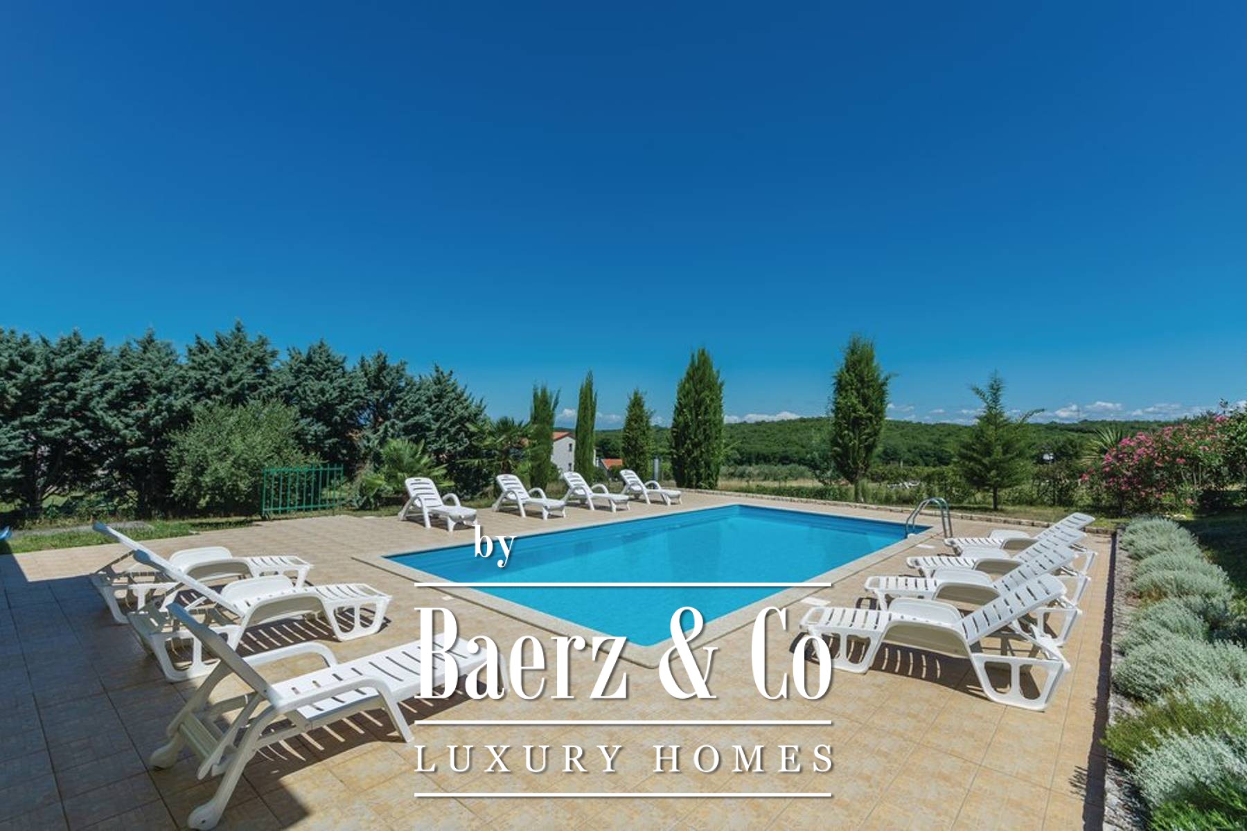 Light moves easily through each apartment, while the landscaped gardens offer shaded corners and a 50 m² swimming pool, inviting relaxation through the Istrian summer. There are nine parking spaces, six of which are covered, ensuring convenience for residents and guests. The villa’s location harmonises connectivity and seclusion, with Poreč only 3 kilometres away and Aquapark Aquacolors a mere 800 metres from the doorstep.