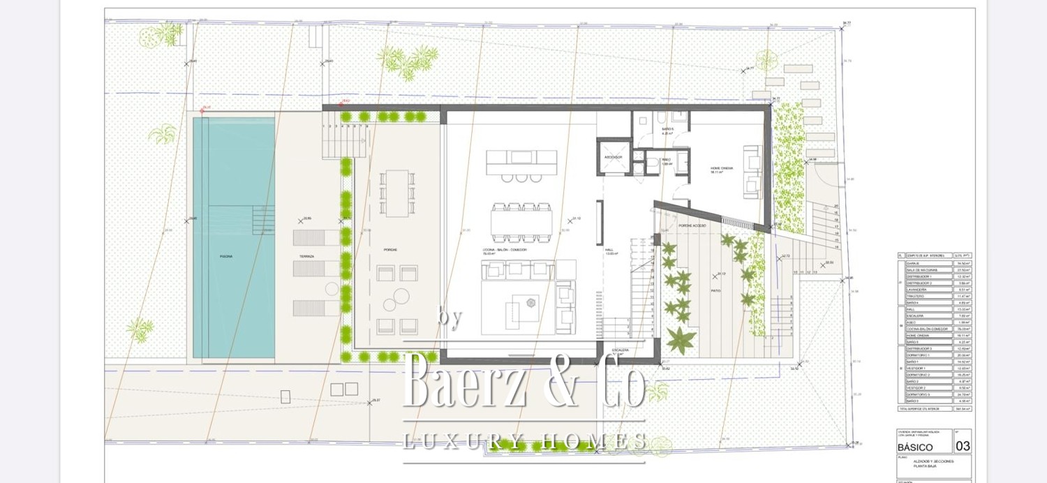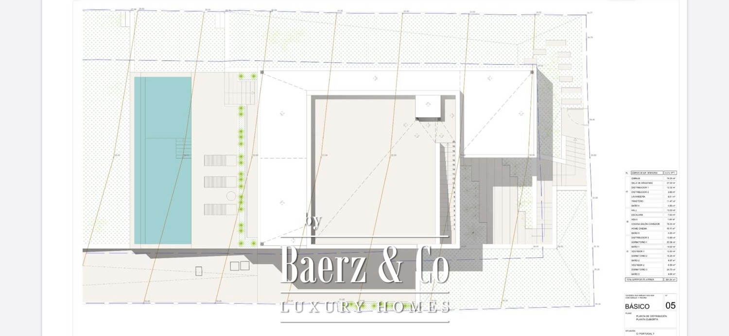 Contemporary villa Portals Nous is a modern statement of architecture and coastal living, situated in one of Mallorca’s most sought-after enclaves. This villa, currently under construction and set on a 1,011 m² elevated plot, offers 290 m² of interior space where expansive glass façades infuse each room with natural light and partial sea views underscore the setting’s exclusivity.