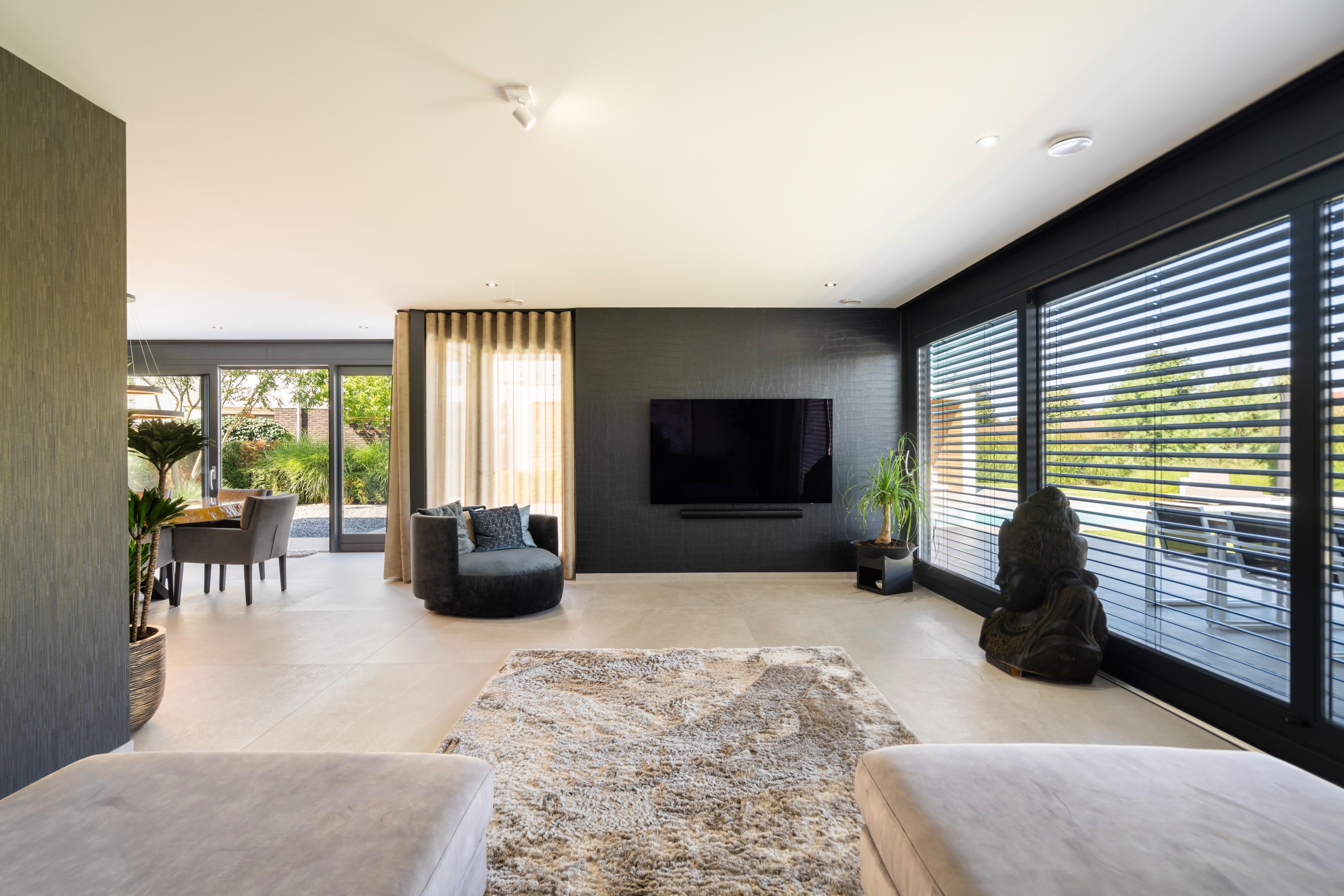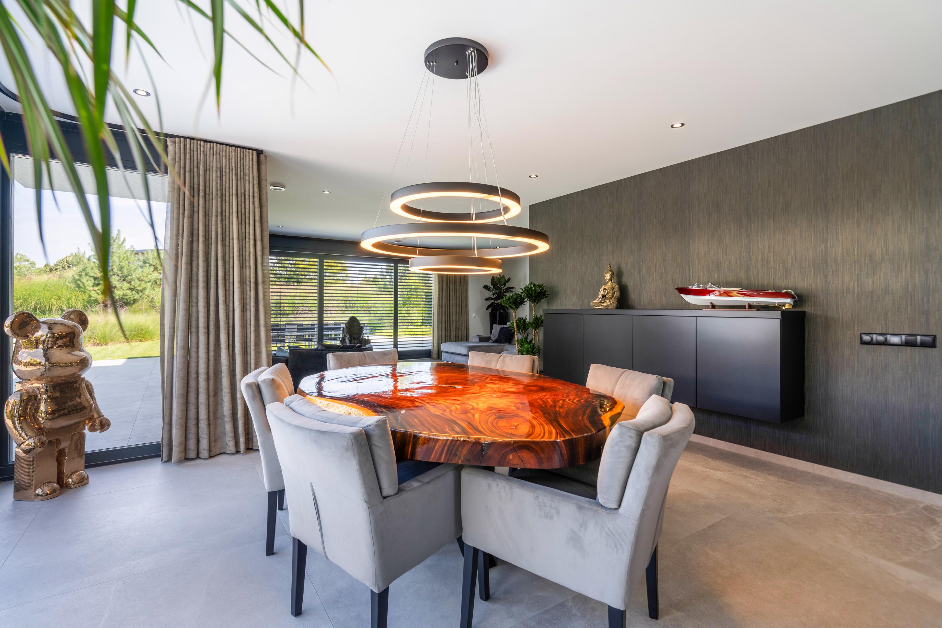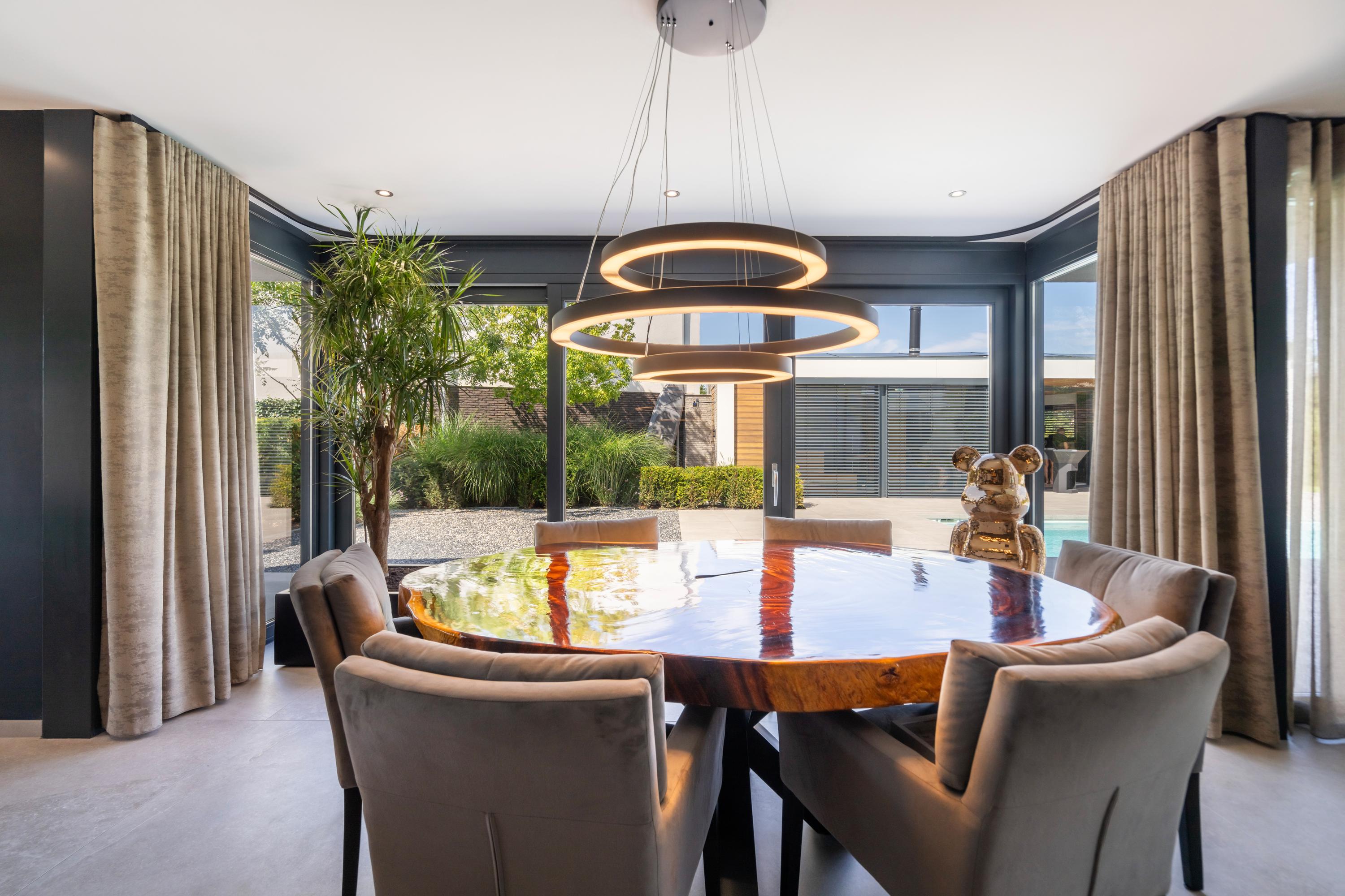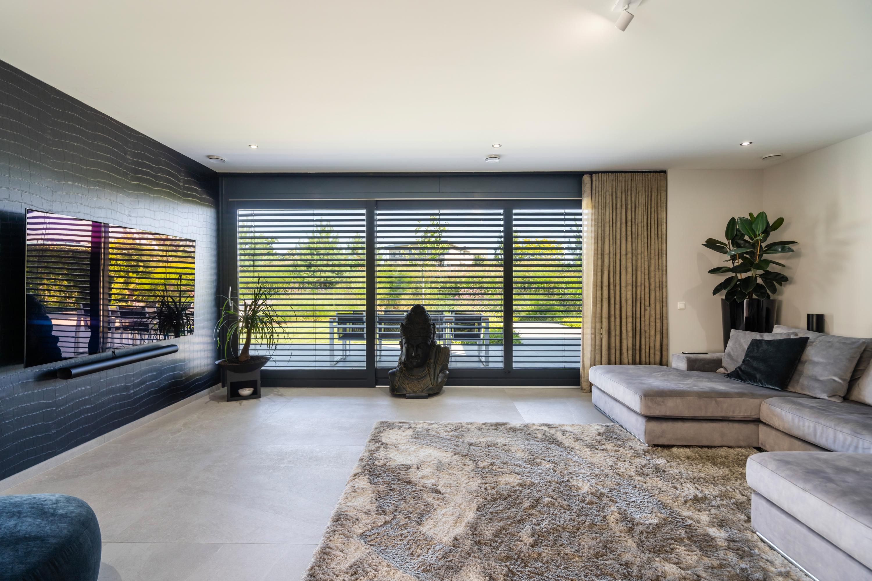 There is a seamless flow between the luxurious kitchen with cooking island, the dining area, and the living room — perfect for entertaining guests and creating a warm, inviting atmosphere. The ground floor is a fantastic place to spend quality time with family and friends. From every angle, you enjoy beautiful views of the garden. And on sunny days, simply open the sliding doors to create a wonderful indoor?outdoor living experience.